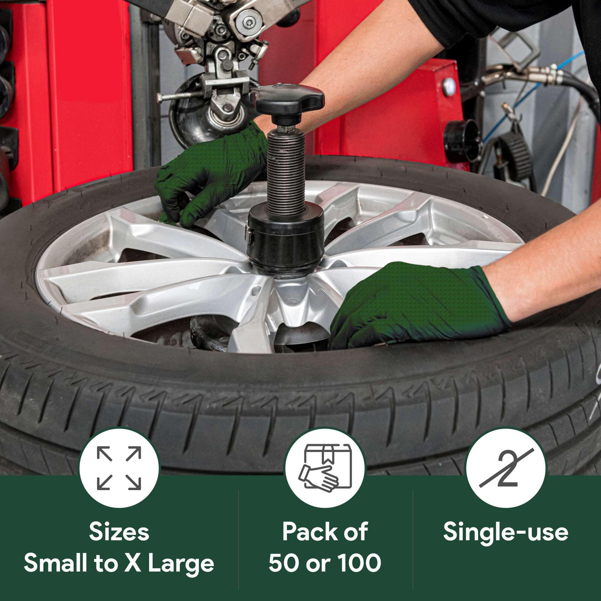 WECARE Green 8 Mil Nitrile Gloves Medium 50 Pack - Heavy Duty Mechanic Gloves, with Diamond Grip - Powder and Latex Free Disposable Gloves