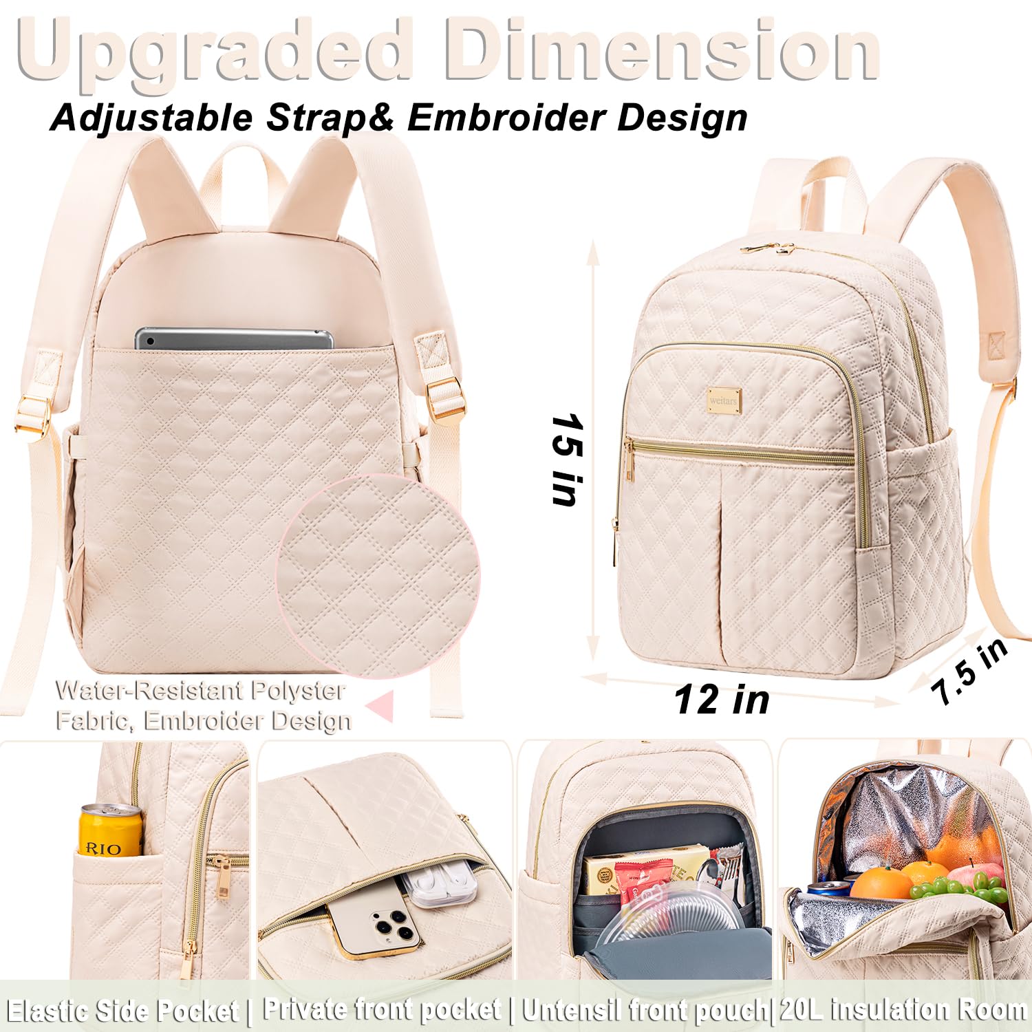 • 【Organized & Large Lunch Backpack】The Lunch Backpack For Women Dimension(12''X7.5''X15''H) Which Offer Up To 20 L Capacity Cooler Compartment For Keep Food/Drink/Snacks; 1 Back Pouch Design For IPAD; 2 Side Elastic Pockets For Umbrella/ Bottle; Two Zipped Front Pockets Design-- Large One For Phone/Wallet/Notebook Storaging, The Smaller Pocket For Small Items Key Card Tissue.Lunch Bag Provides Independent Space For Lunch Box,Drinks,IPAD,Phone,Bottle,Wallet,Books And More