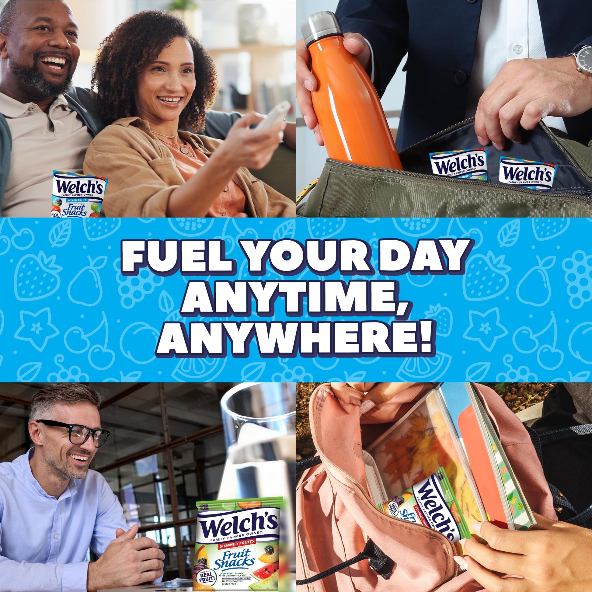 Details: Enjoy the naturally fruity taste of Welch's Fruit Snacks, made with Whole Fruit as the first ingredient for a soft, chewy snack the whole family will love. Bursting with a variety of fun fruit shapes and flavors, these gluten free snacks are perfect for school, work, road trips, or anytime cravings. Each convenient snack pack is individually portioned and ideal for lunchboxes, purses, backpacks, and desk drawers. Welch's Fruit Snacks are an excellent source of Vitamin C, A & E and are both fat free and gluten free, offering a feel-good option for everyday snacking. Whether you're grabbing a few snack packs or stocking up with a snack box—available in 12ct, 40ct, 60ct, or 144ct sizes—you’ll always have a delicious, family-favorite snack ready to go. With Welch's Fruit Snacks, snacking is simple, satisfying, and fun.