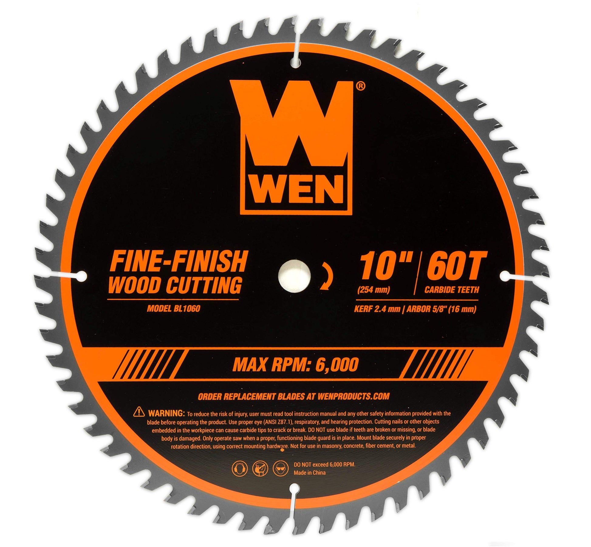 Details: Remember when you had a smooth cut with no tearout? The WEN 10-Inch Professional Fine-Finish Woodworking Saw Blade provides reliable and accurate performance, maintaining its straight shape and sharp edges for longer than the competition. The machine-cut carbide-tipped teeth slice through woods of any kind, making easy work out of pine, oak, poplar, cherry, maple, walnut, and more. The 5/8-inch arbor allows for compatibility with the majority of 10-inch miter saws, jobsite saws, and table saws on the market. Heat expansion slots help the blade expand and contract as needed to provide maximum accuracy across a wide range of cutting conditions. Our unique protective coating fights off potential damage caused by heat, rust, corrosion, gumming, resin, and more. This lightweight, ultra-thin blade provides maximum efficiency during operation, leaving behind a kerf a mere 1/10 of an inch wide (2.4 mm). It’s time to get reliable and powerful performance with a WEN Saw Blade. Remember when you had a blade that lasted? Remember WEN.