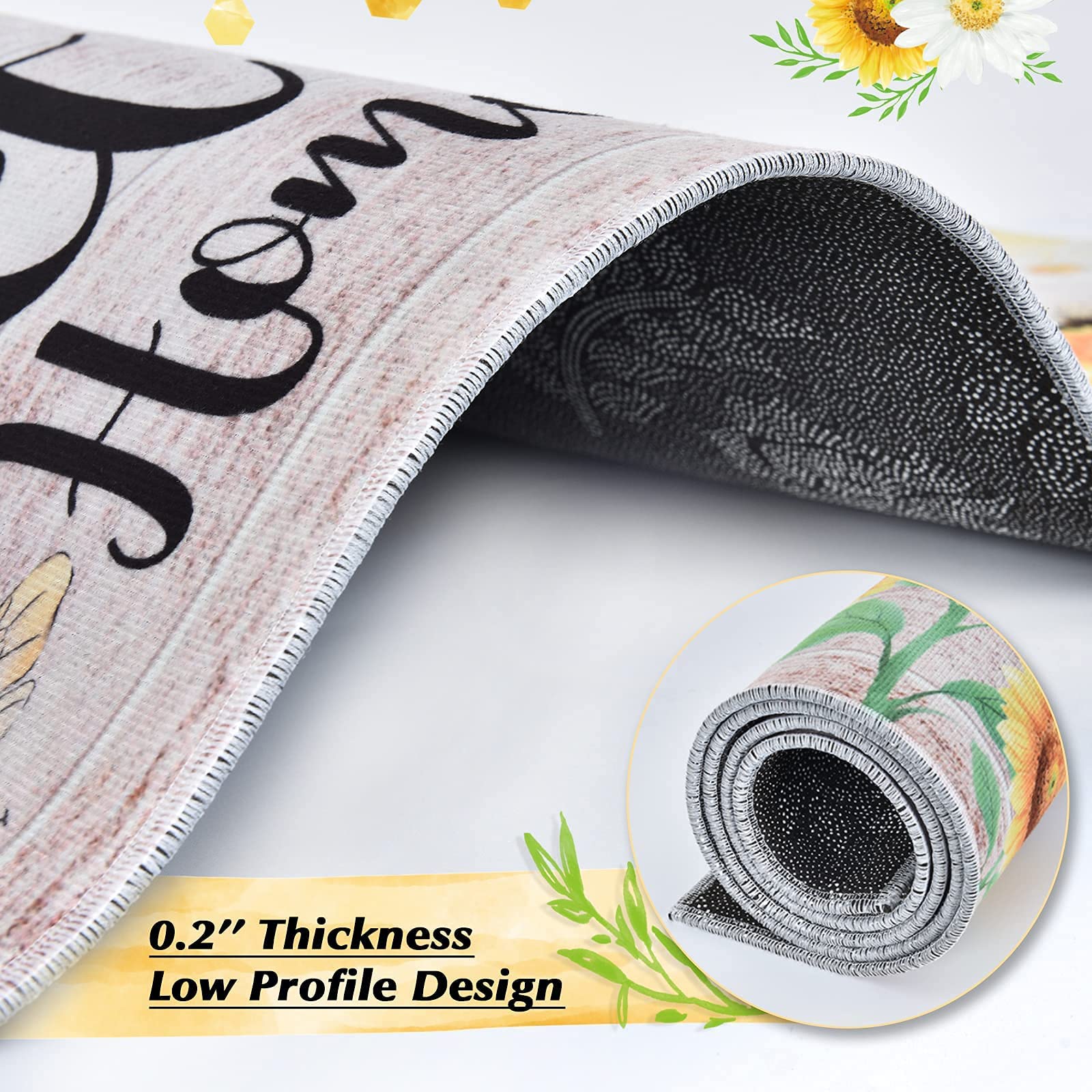 • UNIQUE DESIGN - With wooden floor background, the kitchen rugs are decorated with vibrant sunflowers and vivid bees, which is reminiscent of the Scottish folk song 'Home Sweet Home'.