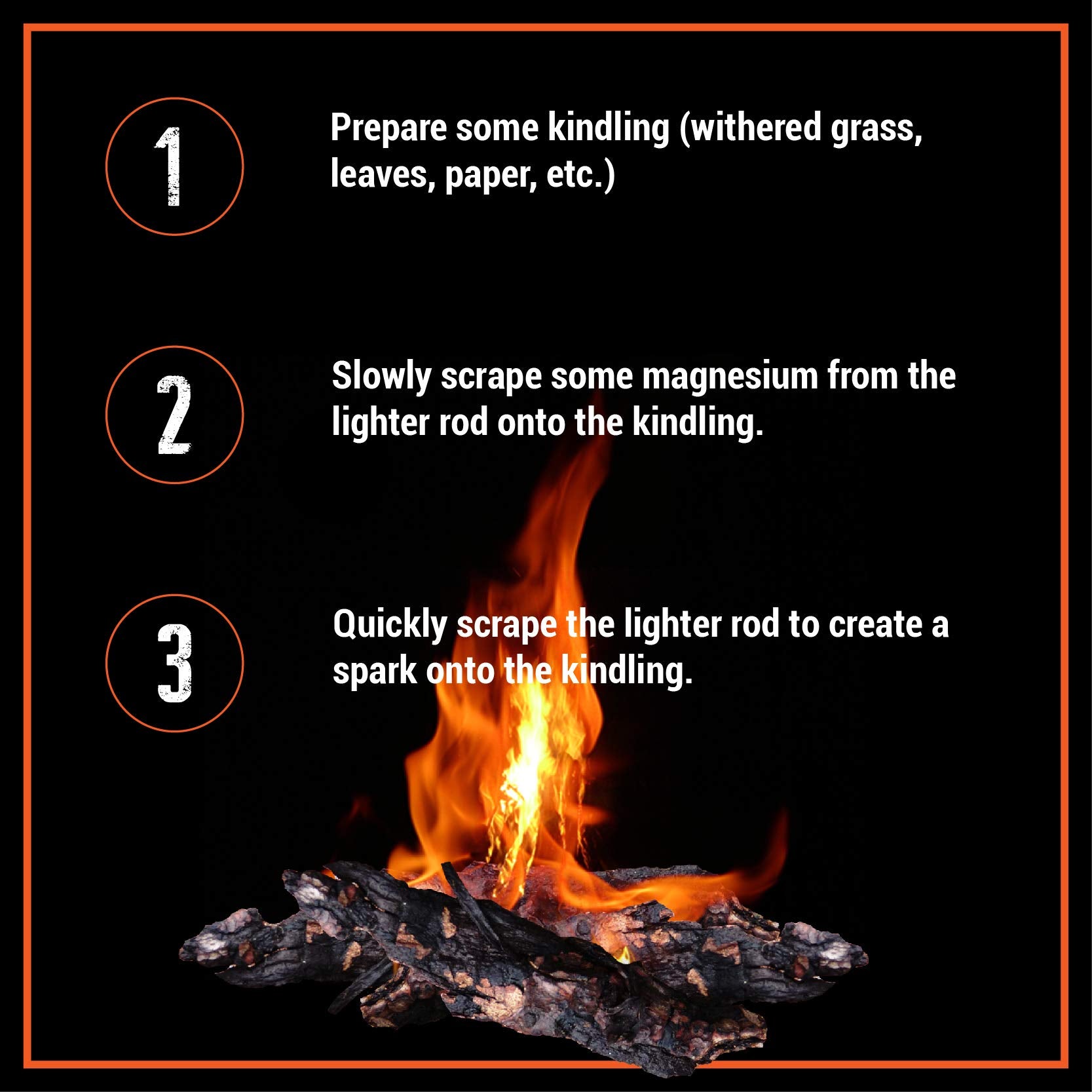 • ✔️ INSTANT FIRE: Start fires under any weather conditions. One Rod can be used over 16,000 times. Sparks shower at 5,500 F (3,000 C) to ignite a fire in any weather (even wet), at any altitude. Perfect emergency fire starter for Bush-craft, Hiking, Camping, Hunting, Fishing, EDC, Emergency, BBQ, Gas Camp Stoves, etc.