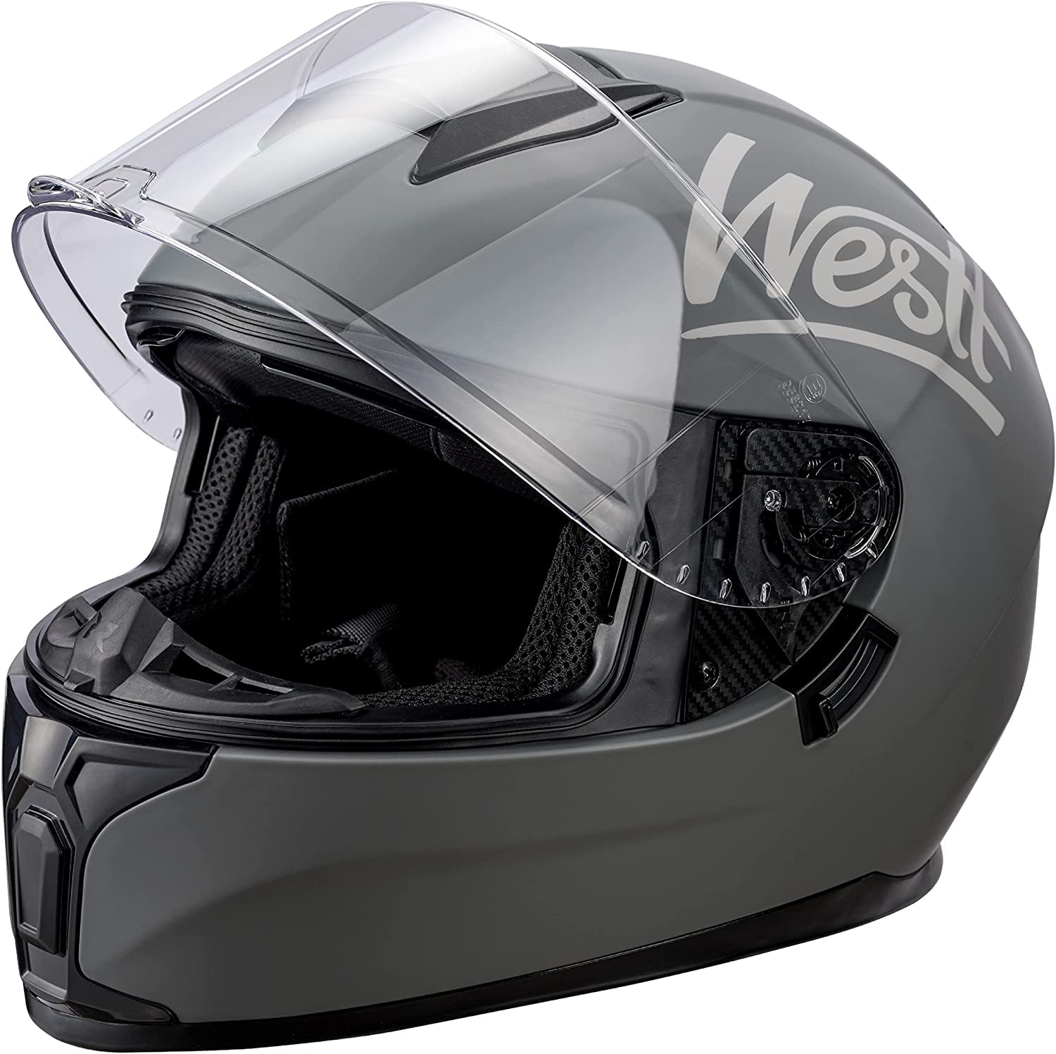 Westt Motorcycle Helmets Full Face Helmets - Street Bike Helmet with Dual Visor DOT Approved for Men Women Adults Compact Lightweight Storm X Grey Black White (Grey, L (23.23-23.62 in))