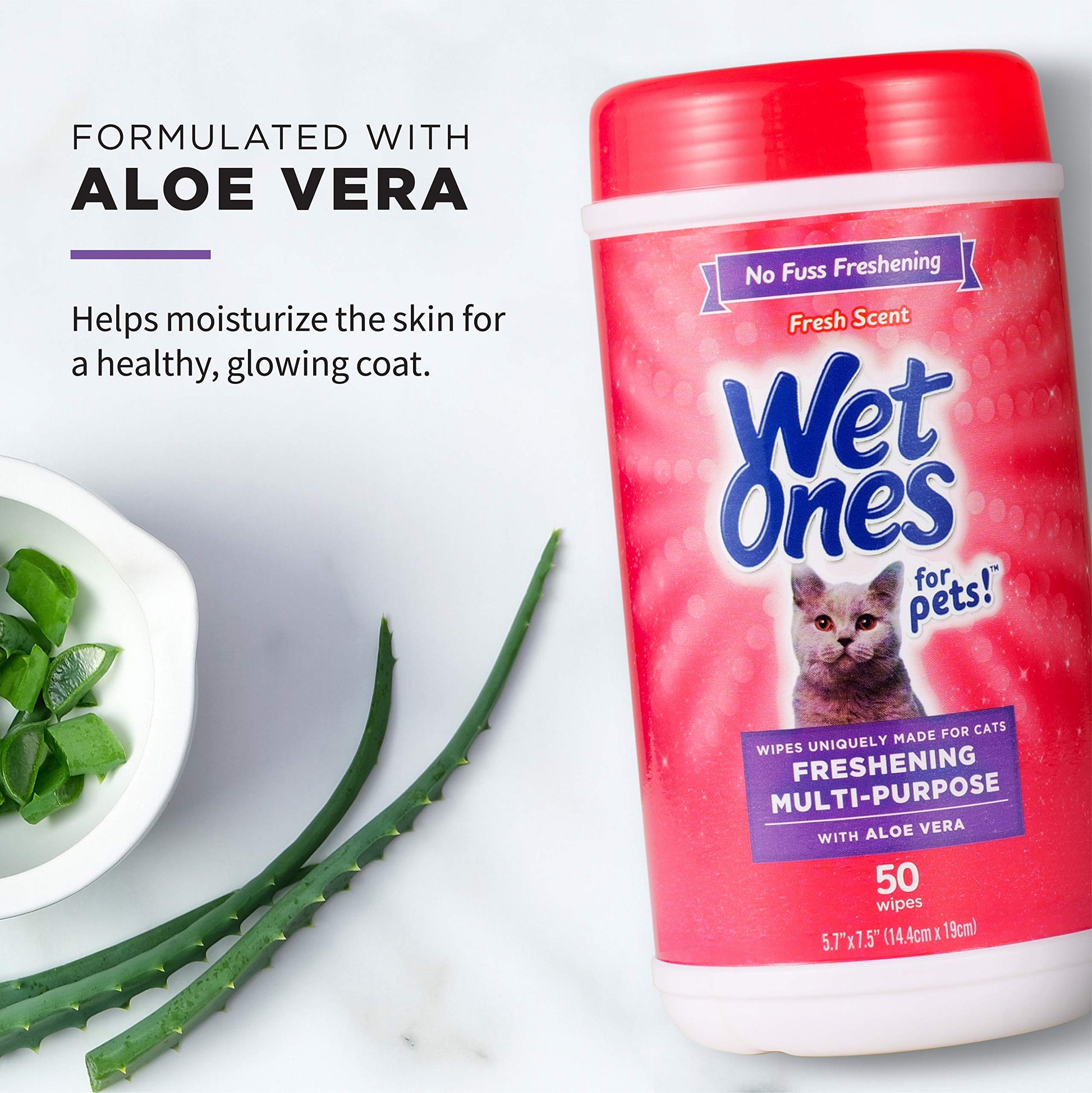 Wet Ones for Pets Freshening Multipurpose Wipes for Cats with Aloe Vera, Fresh Scent - Easy to Use Cat Cleaning Wipes for Pet Grooming in Canister, 50 Count