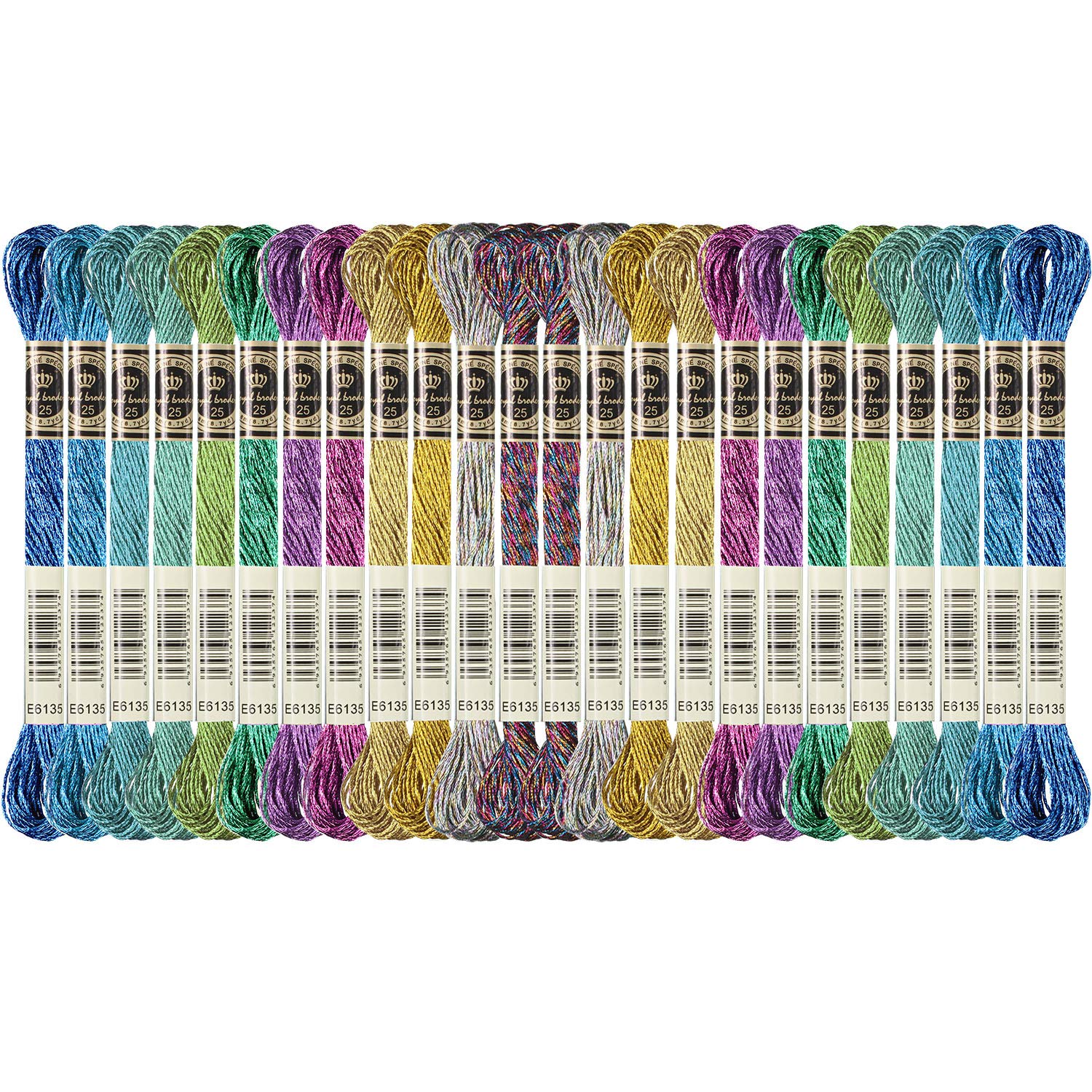WILLBOND 24 Pcs Metallic Embroidery Floss Cotton Stitch Embroidery Thread Skein Threads Glitter Embroidery Thread Cross Stitch Thread for Friendship Bracelets DIY Thread Crafts(Classic Color)