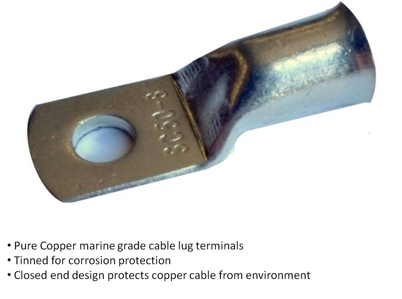 • Pure copper cable lugs are tinned coated and utilize a closed end design for corrosion protection.