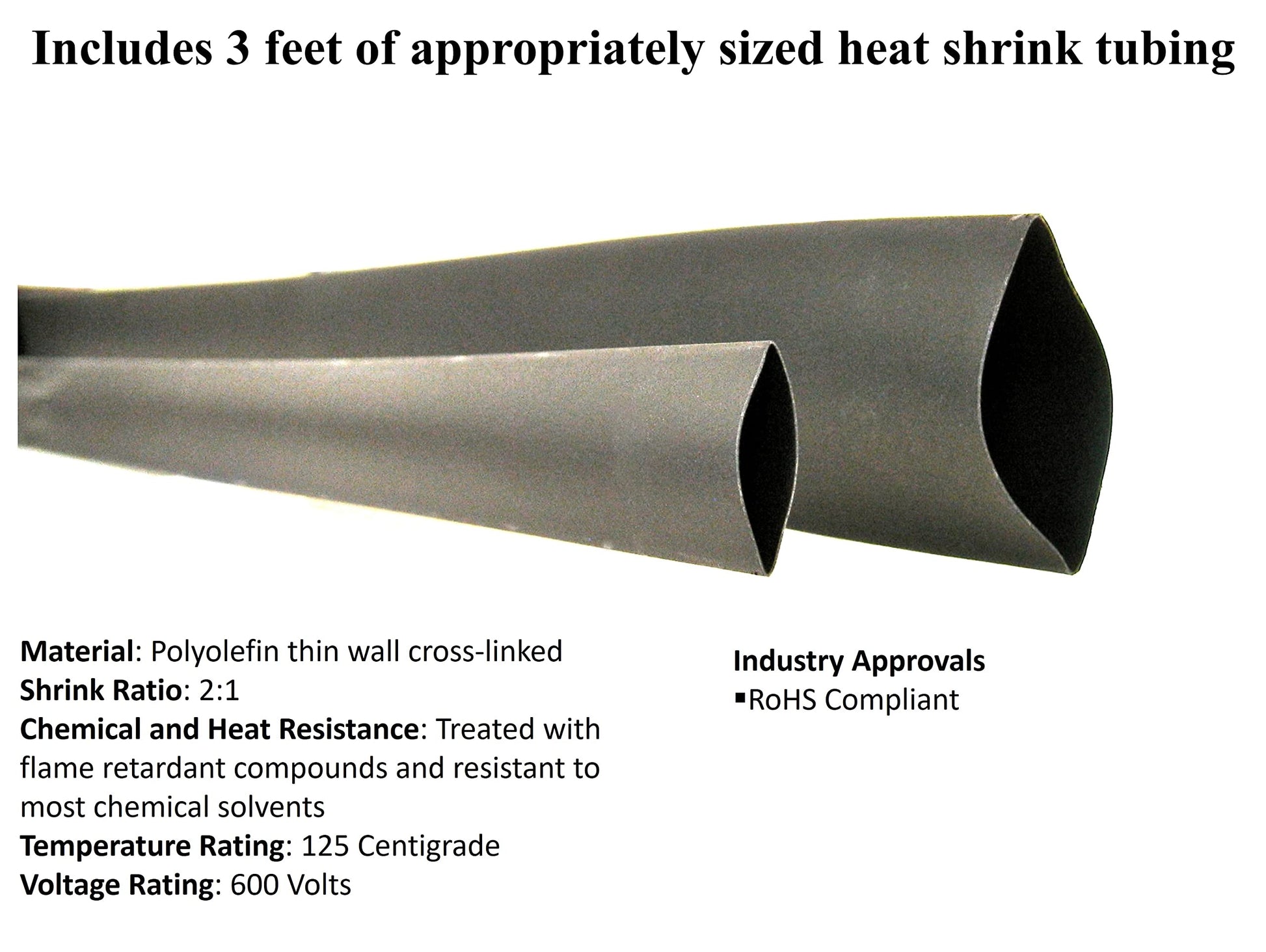 • Polyolefin heat shrink tubing applied to form a protective seal.