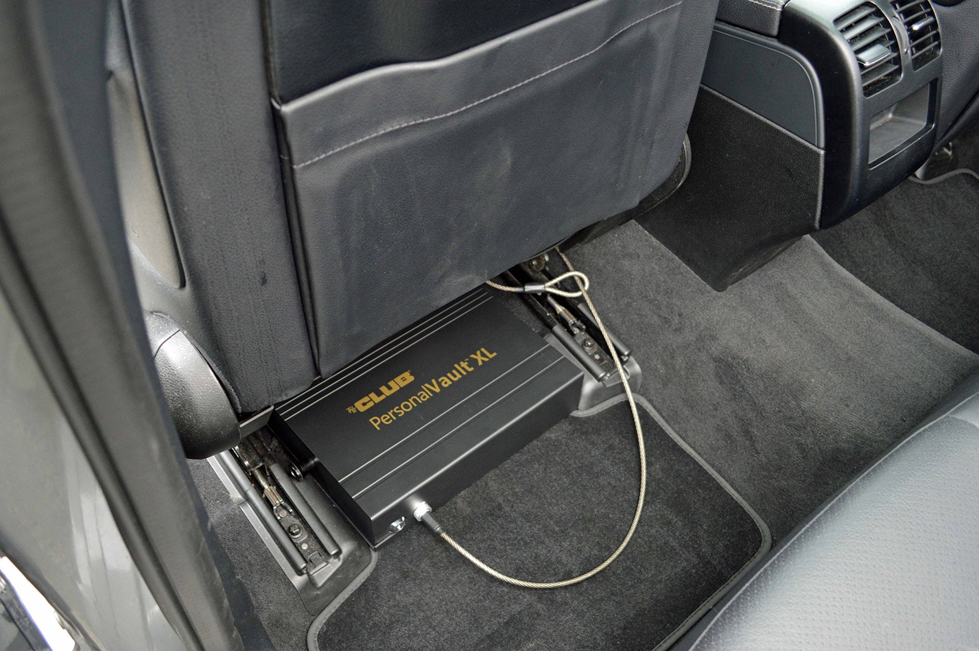 Fits under most vehicle seats for easy access and secures with a braided steel cable (included)