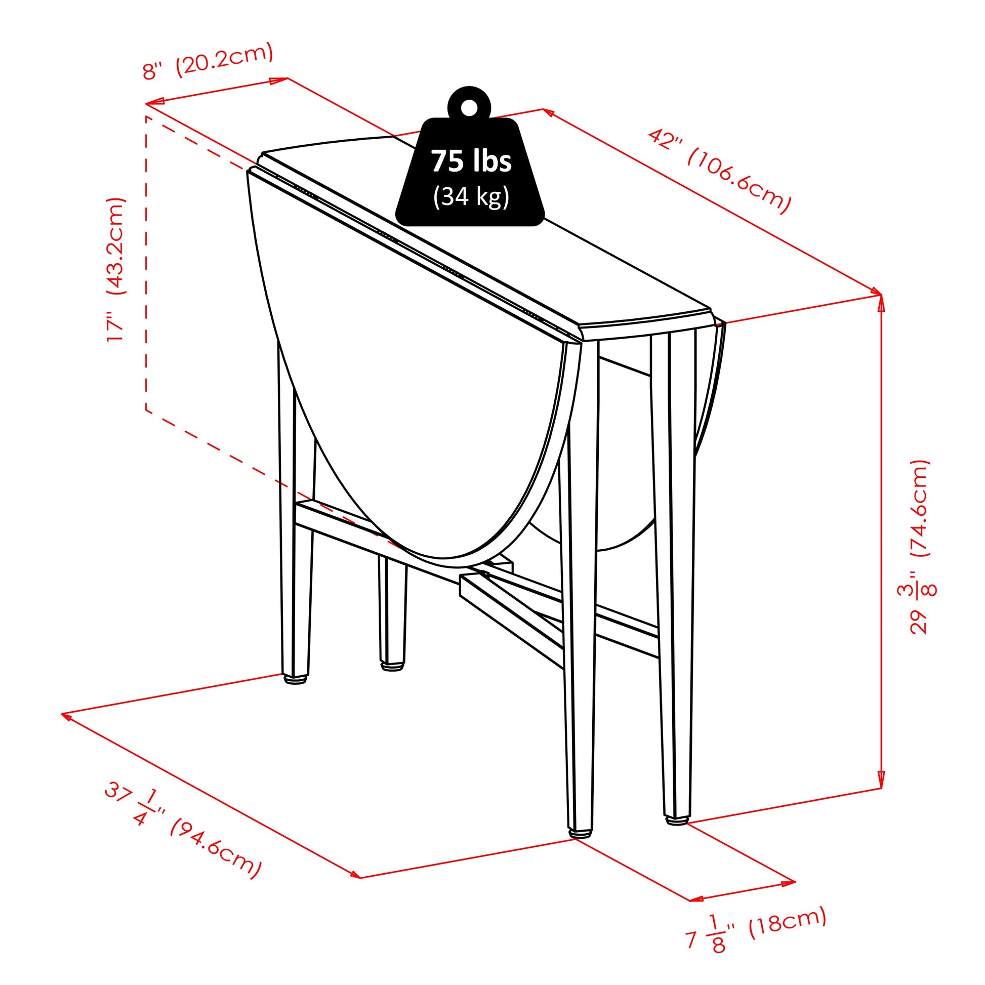 Straightforward and economical, this Winsome Wood 42-inch round drop leaf table doesn't scrimp on quality: sturdy solid/composite wood construction and subtle tailoring make it a useful piece for years to come. When guests arrive, the table's two leaves fold out to make room for four with a graceful beveled top edge and slender, tapered legs that provide plenty of support without bulk. With just one leaf up, the table works well in small spaces like studios or kitchen breakfast areas. To store, simply put both leaves down and collapse the crossed support rails. The table's Light Oak finish is casual and warm under colorful placemats for everyday use or add a linen tablecloth and china settings for more elegant affairs. It measures 29-1/2 inches high and comes fully assembled.