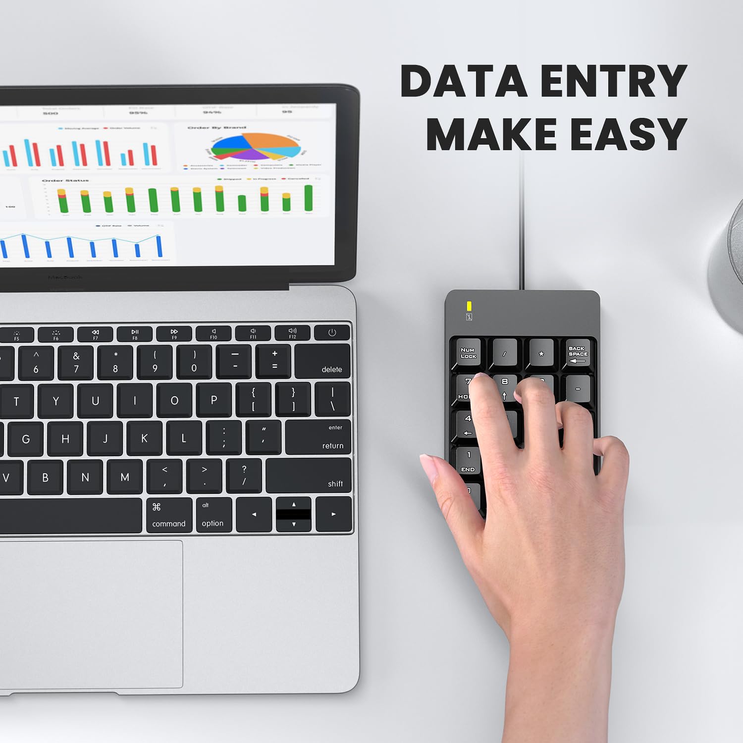 • USB Wired Number Pad - Full-size 19mm keys improve speed and accuracy by making it easier to locate and press the numbers you are looking for. Numeric keypad supports NumLock.