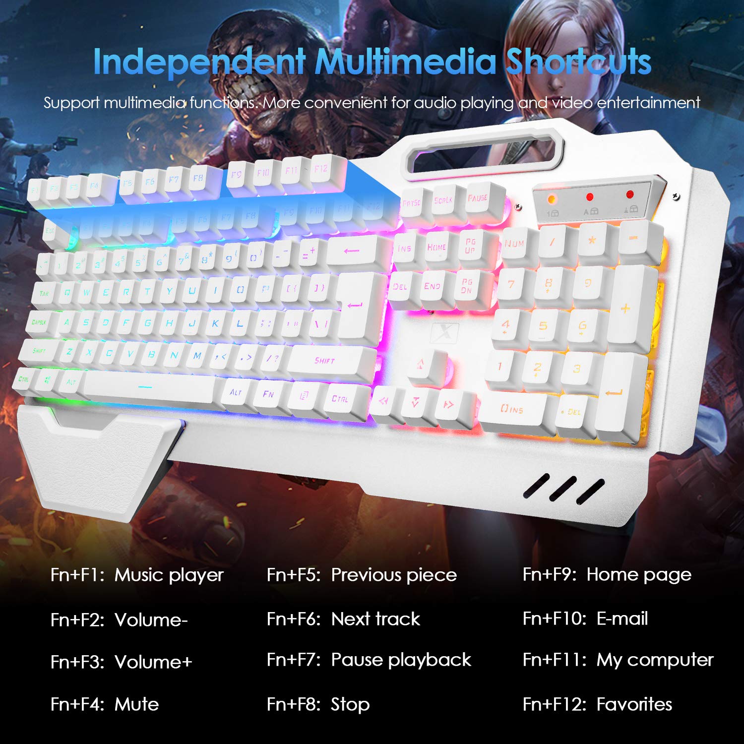 Wireless Gaming Keyboard and Mouse,RGB Backlit Rechargeable Keyboard Mouse with 5000mAh Battery Metal Panel,Removable Hand Rest Mechanical Feel Keyboard and 7 Color Gaming Mute Mouse for PC Gamers