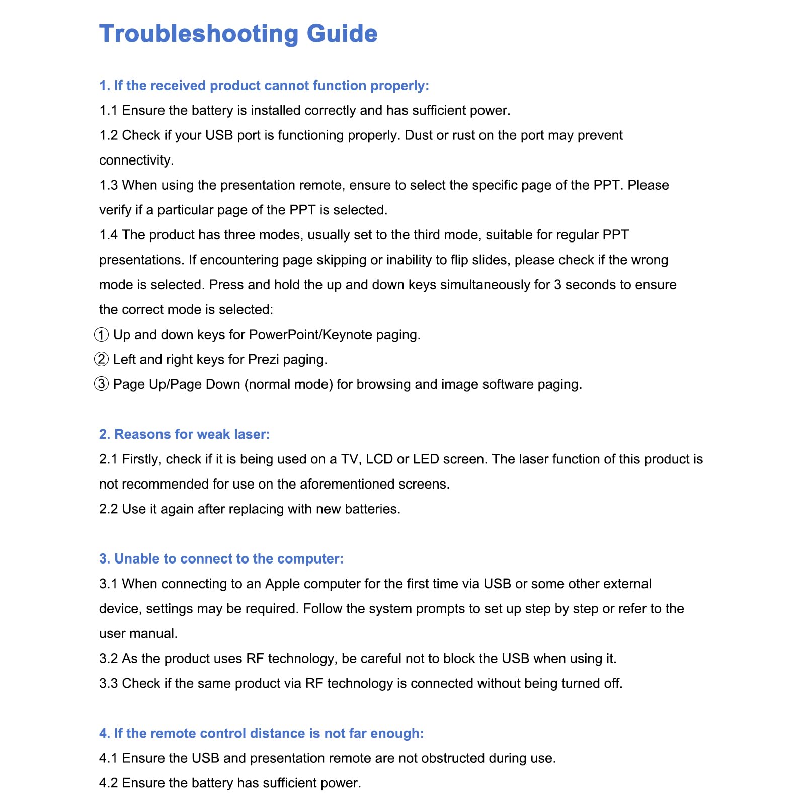 • 【PLUG & PLAY】 The clicker pointer for presentations is easy to use, just plug the usb receiver and it is ready to go, no need to download any software. (The USB fits into the bottom of the clicker. )
