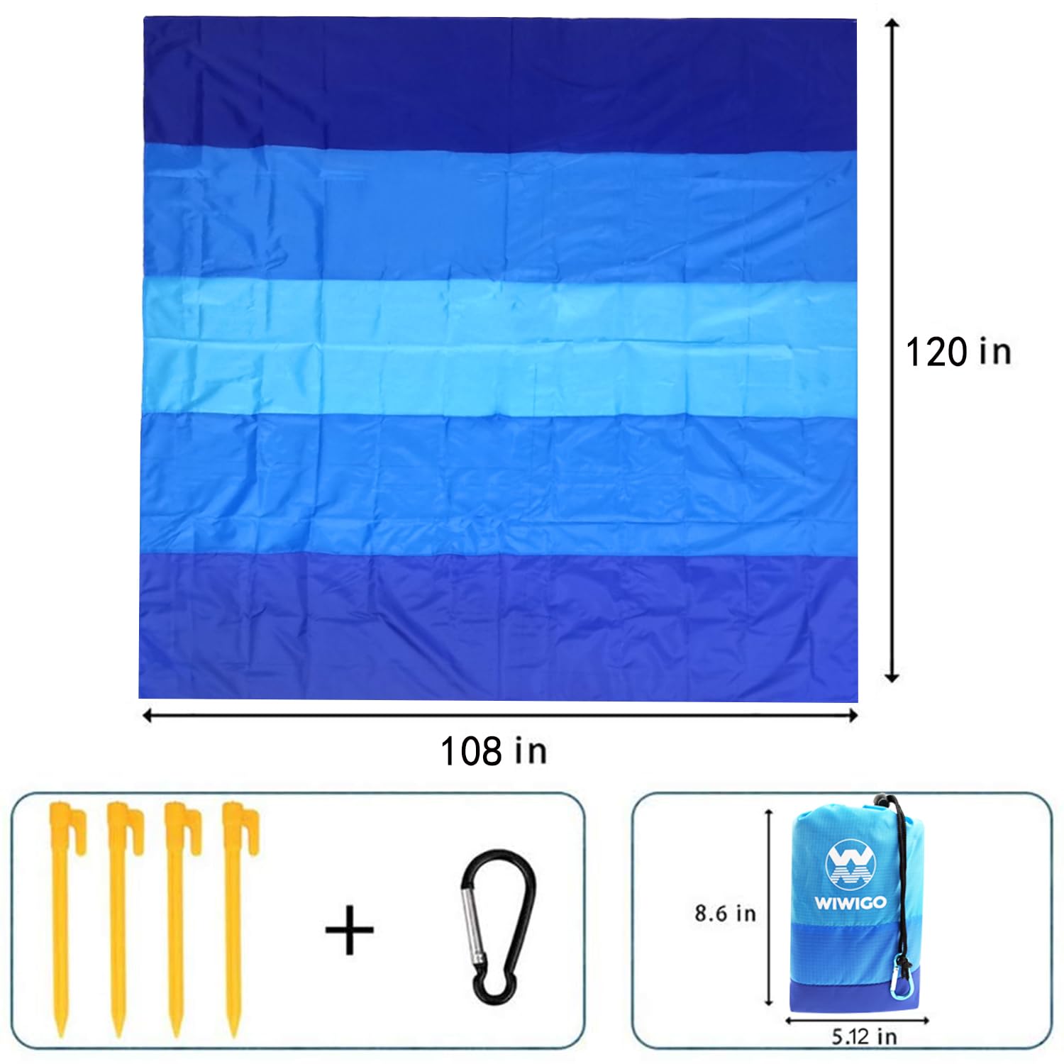 WIWIGO Beach Blanket, Sandproof Beach Mat 120in X 108in for 2-8 Adults Waterproof Quick Drying Outdoor Picnic Mat for Travel, Camping, Hiking