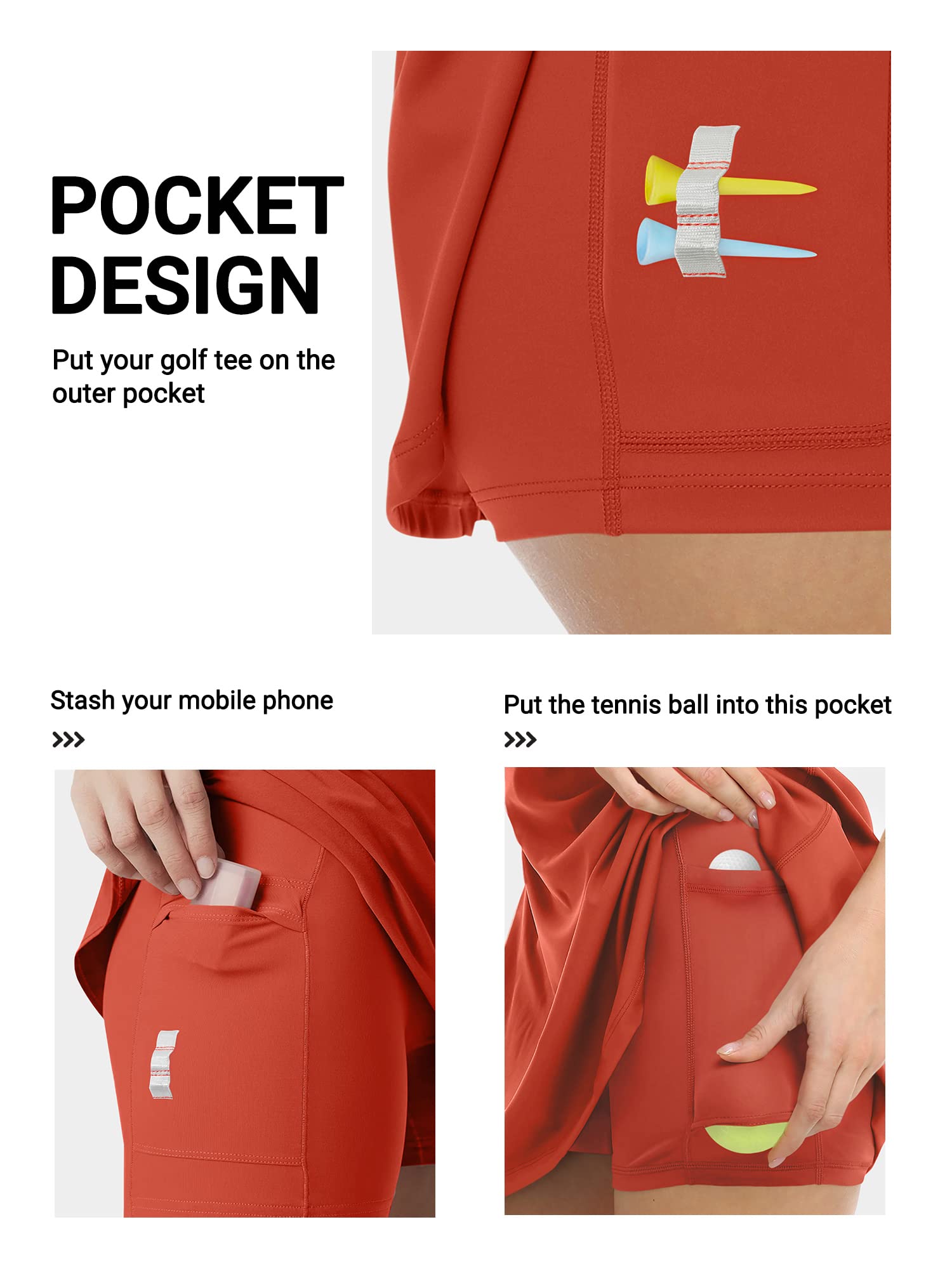 • Three Pockets: To provide more convenience for users, we design three pockets for storing essentials such as credit cards or other small items when you're on the go. The left two pockets can stash the tennis ball, you can store the ball from the upper or lower pockets according to your preference. The right pocket can store the mobile phone. Moreover, we have designed a function to put the golf tee in your out layer of right pockets, you can wear this dress for golf activities.
