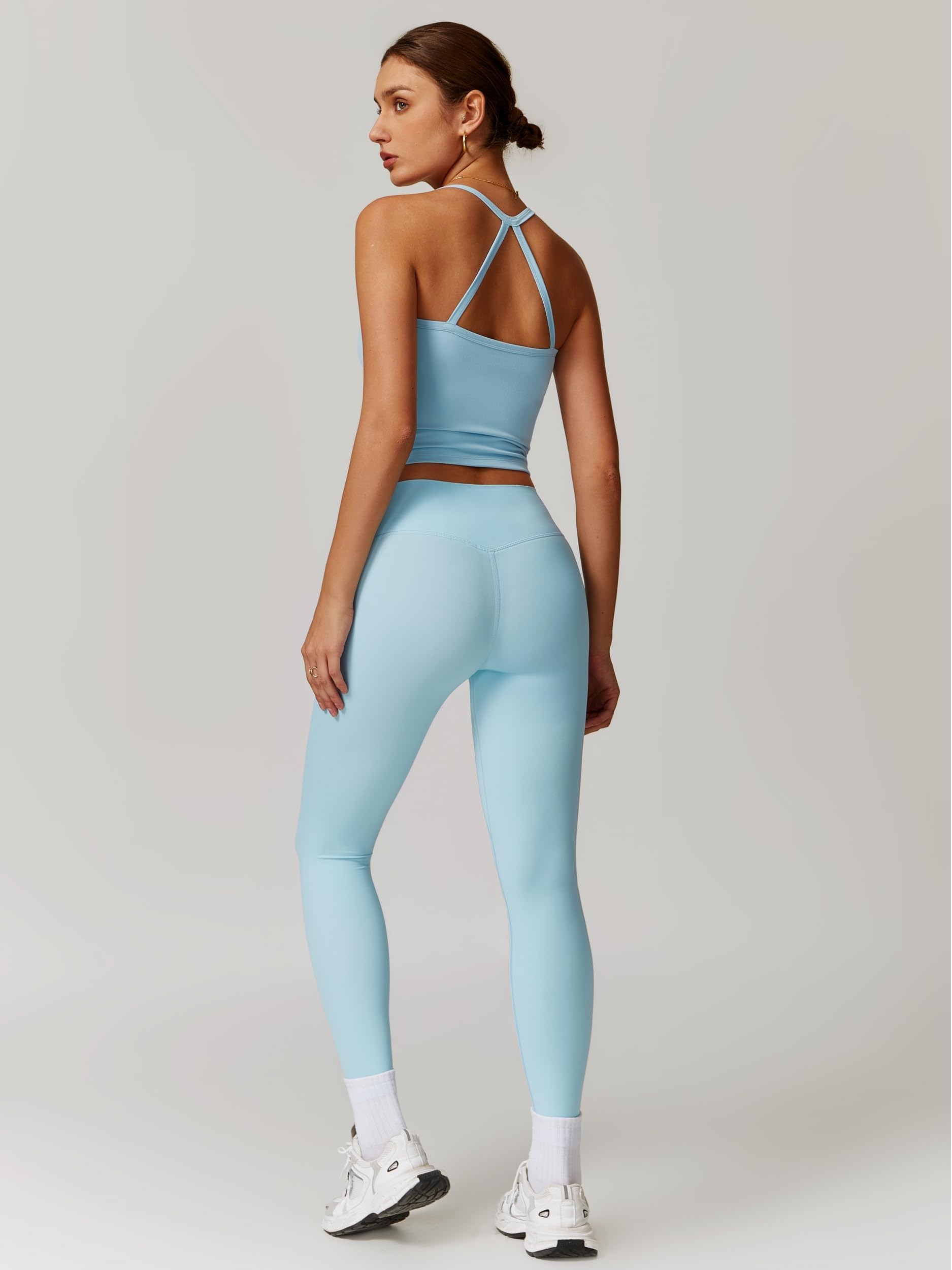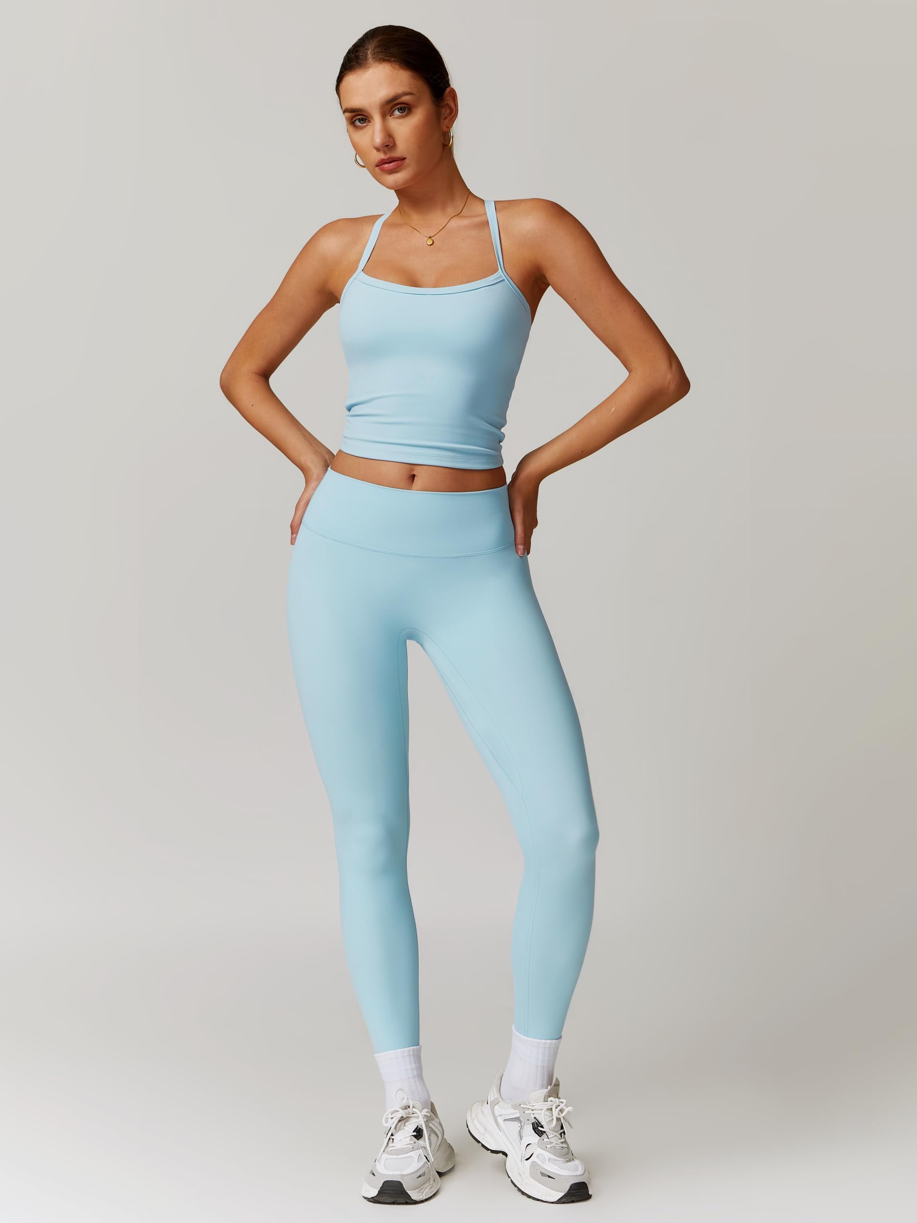 Womens Workout Sets Two Piece Seamless Stretch Cross Back Tank Top Matching Tummy Control High Waist Leggings Set 2 Piece For Women Gym Yoga Active Wear Outfits Athletic Work Out Clothes Blue S