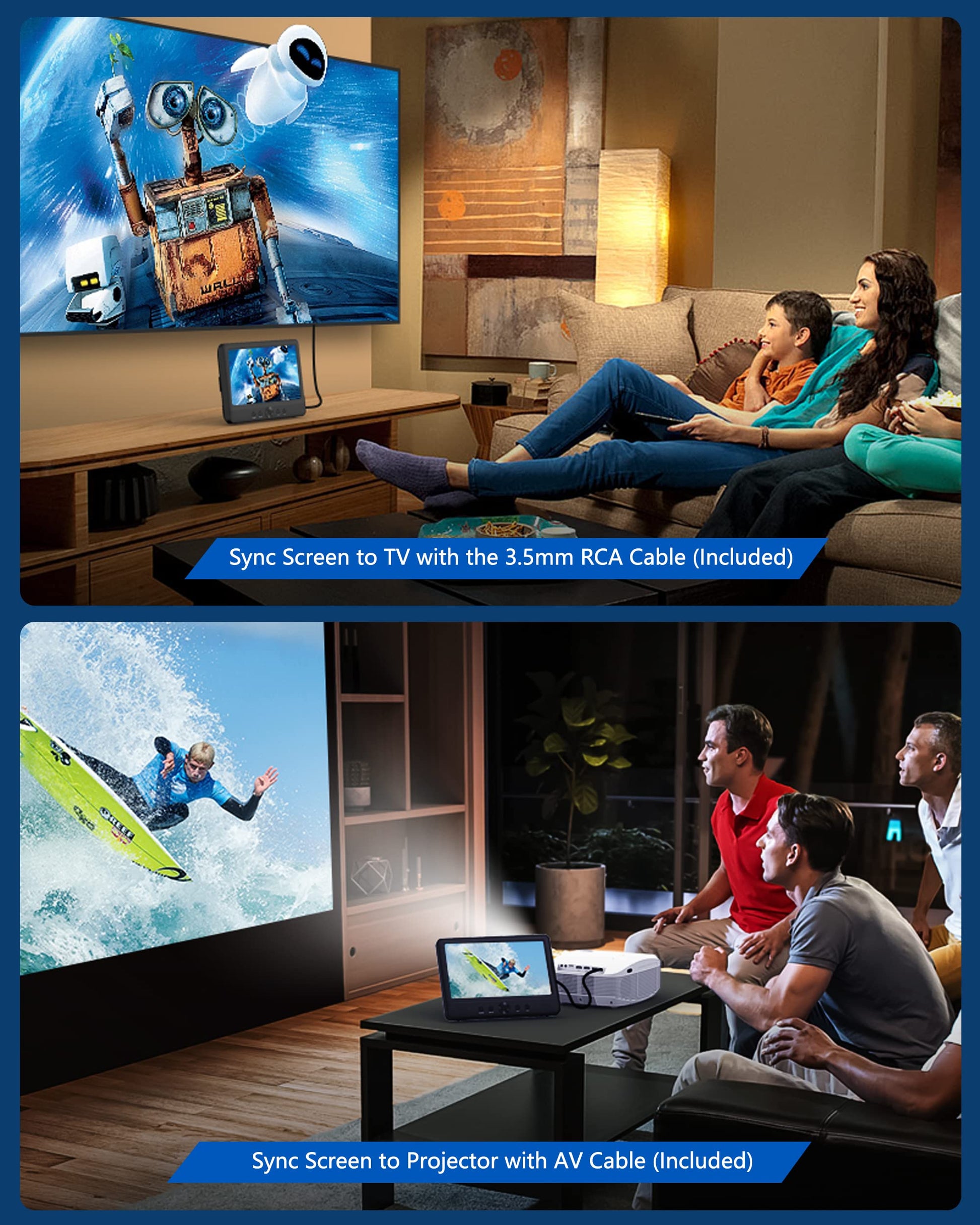 • 【Sync Screen & Last Memory】Euipped with AV Out port on each unit and supplied with RCA cable, allow you to sync the screen from dvd player to your home TV to enjoy movie with your families easily. The dual car headrest video players will still record your last playback position even after it is turned off, you will always start playback where you left off. You don't need to worry about the movie not being able to pick up the last played plot