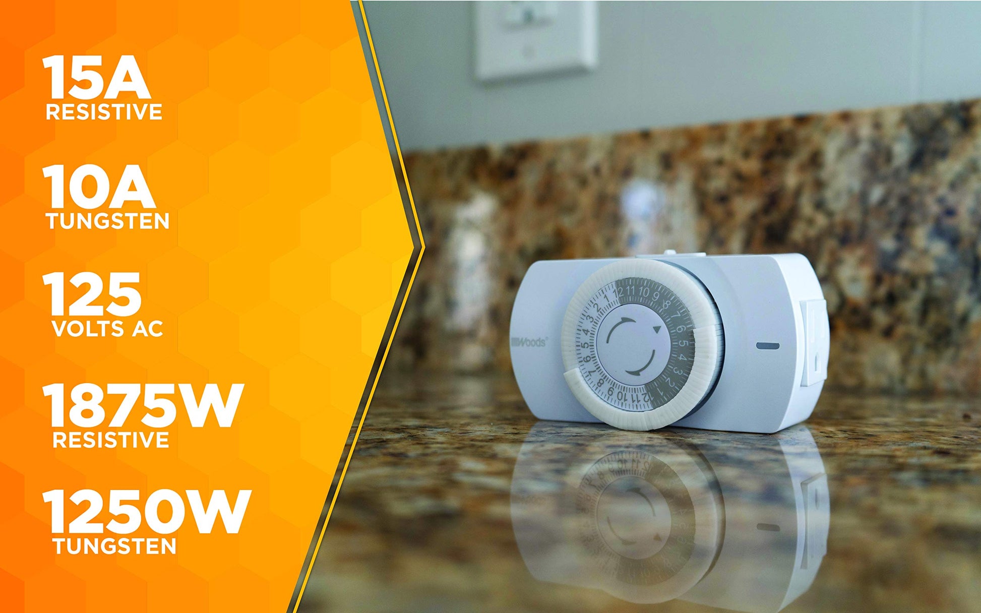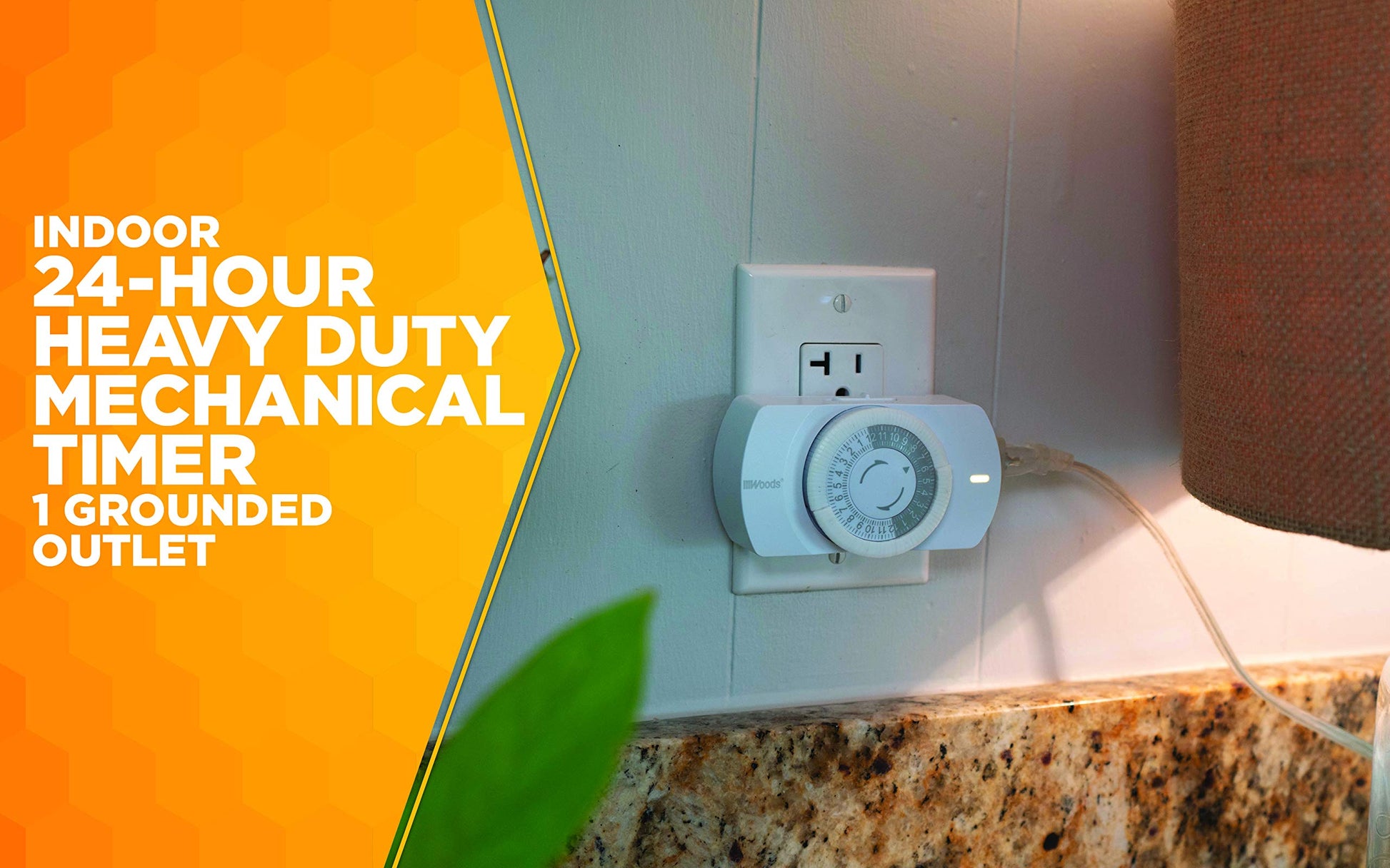 Woods 50103WD Indoor 24-Hour Heavy Duty Mechanical Timer; 1 Grounded Outlet; Standard Body