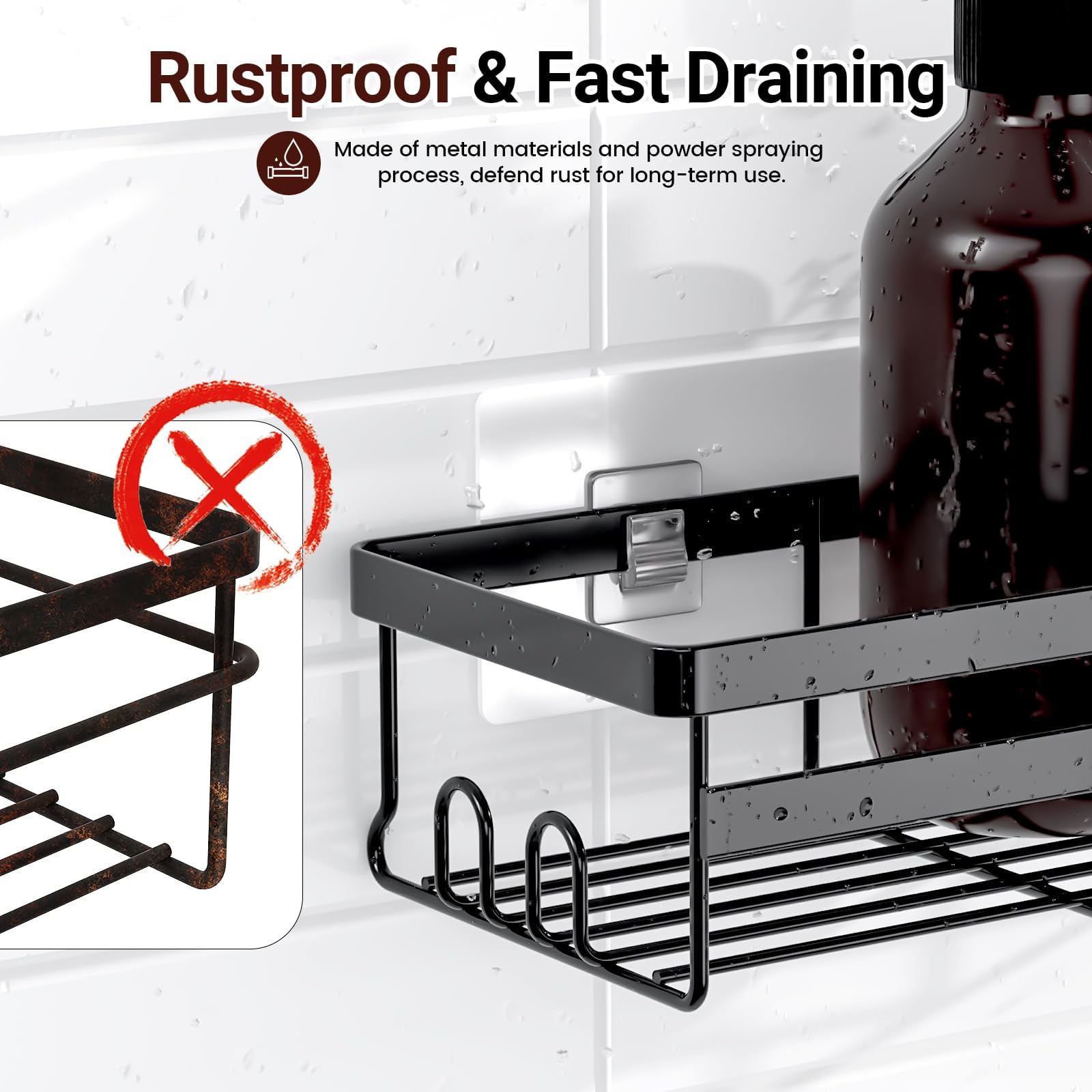 • 【What is included】2 x Shower Caddies with Hooks, 2 x Transparent Adhesive Stickers, and 1 x User Manual.