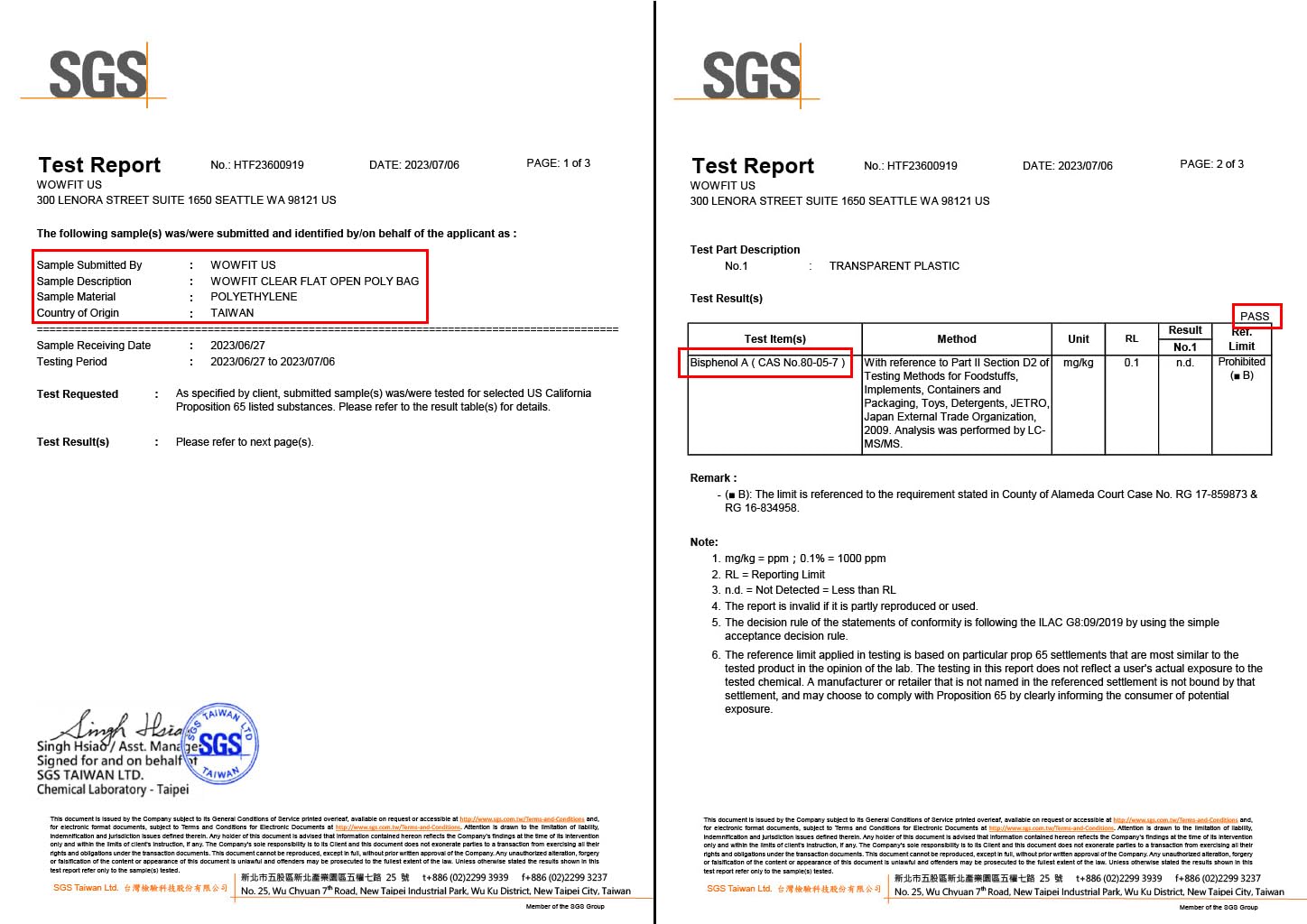 • Food-grade container: Bags meet the requirements (certification was shown on product-image) for safely storing food and can be heat sealed or closed with twist ties(NOT included)