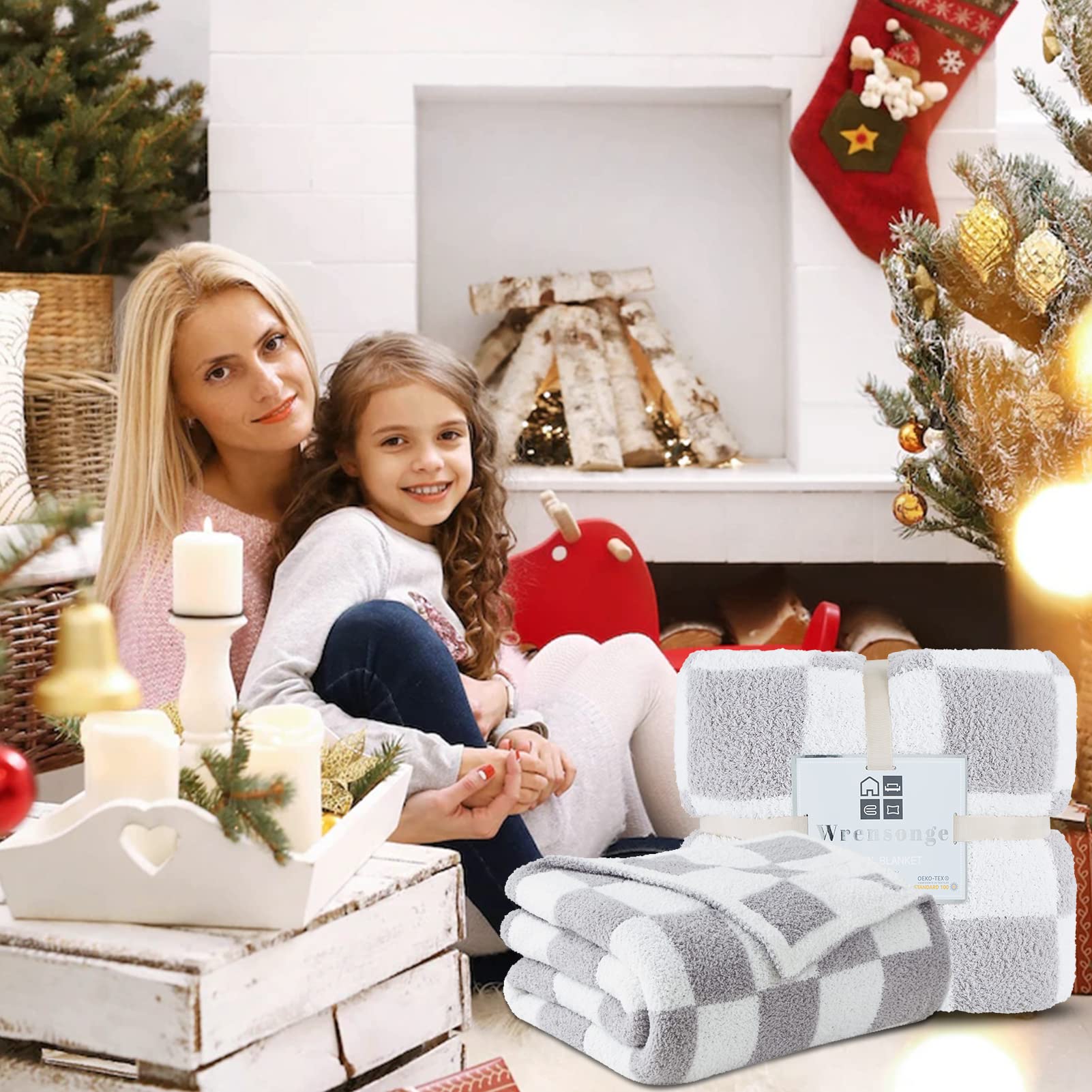 WRENSONGE Checkered Throw Blanket, Light Grey Soft Cozy Fluffy Warm Hand Made Throw Blankets for Couch, Sofa, Chair, Bed, Camping, Picnic, Travel Lightweight Bed Blanket - 50"*70"
