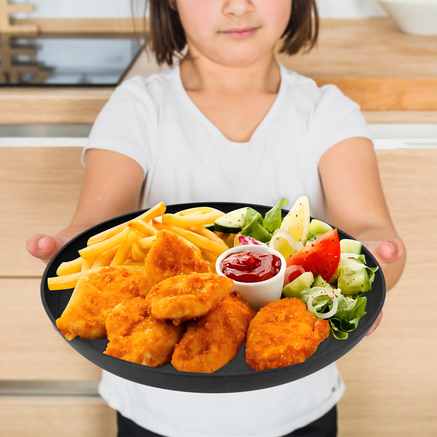 Wrova Large Wheat Straw Dinner Plates - 11 Inch Unbreakable Set of 8 - Dishwasher & Microwave Safe, Deep Edge for Kitchen and Camping (Black)