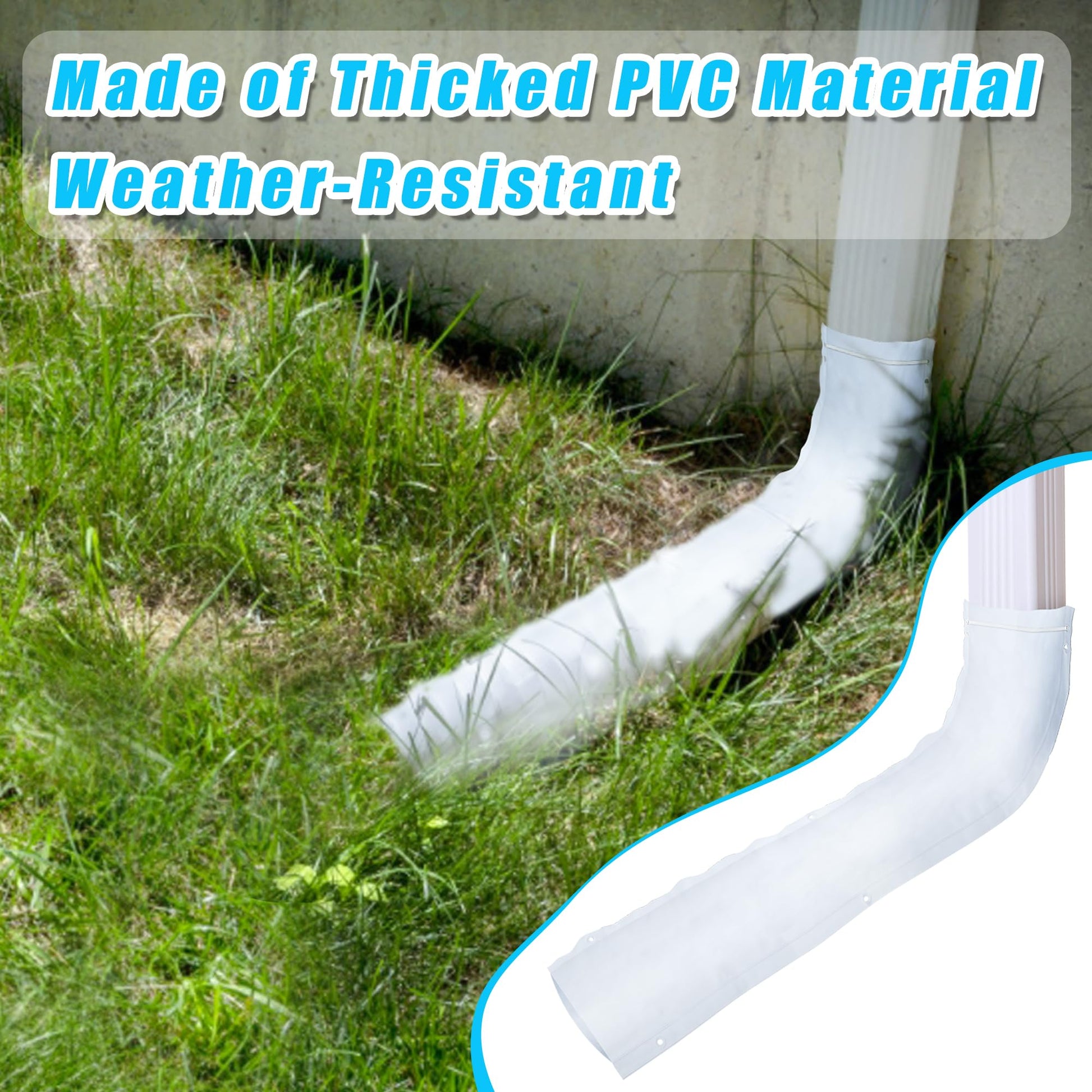 • 【Easy to Install】Use zip ties to secure through the punched hole, and designed hole at the bottom of downspout extension, which can be fixed with landscape staples to prevent blown up.