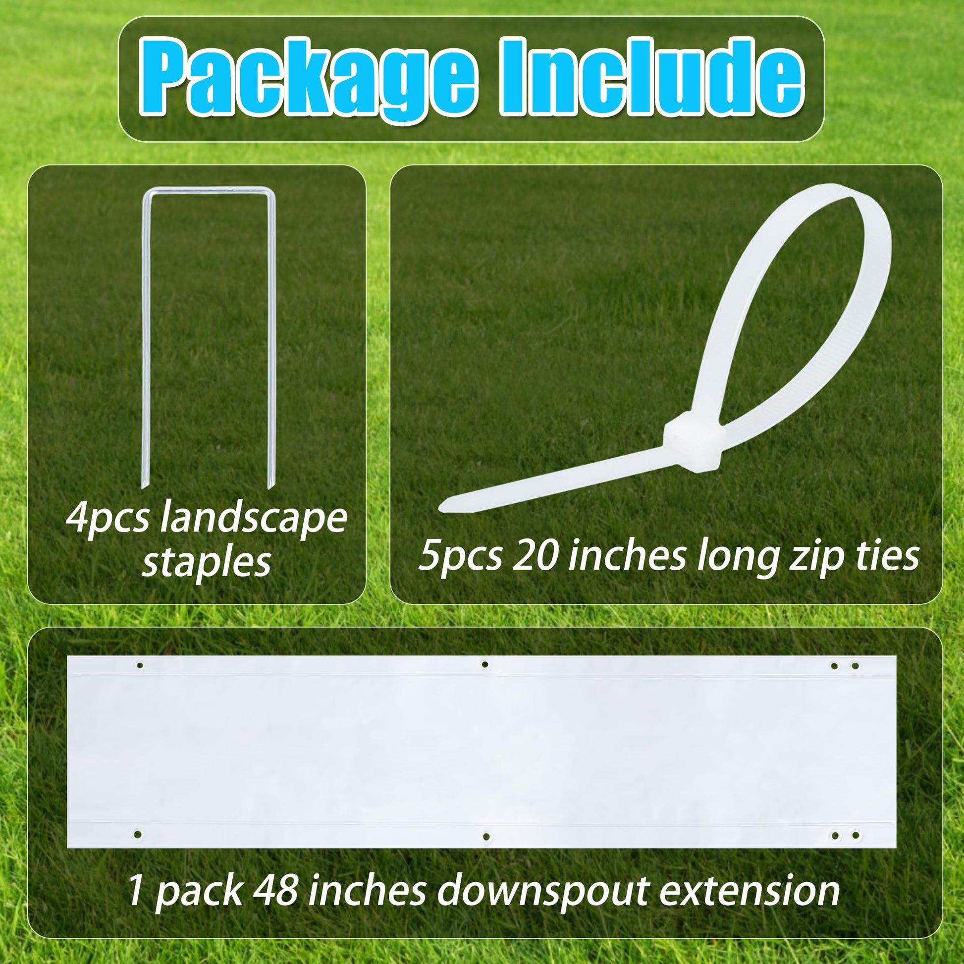 • 【Package Includes】1 pack 48 inches long downspout extension, 4pcs landscape staples and 5pcs 20 inches long zip ties.
