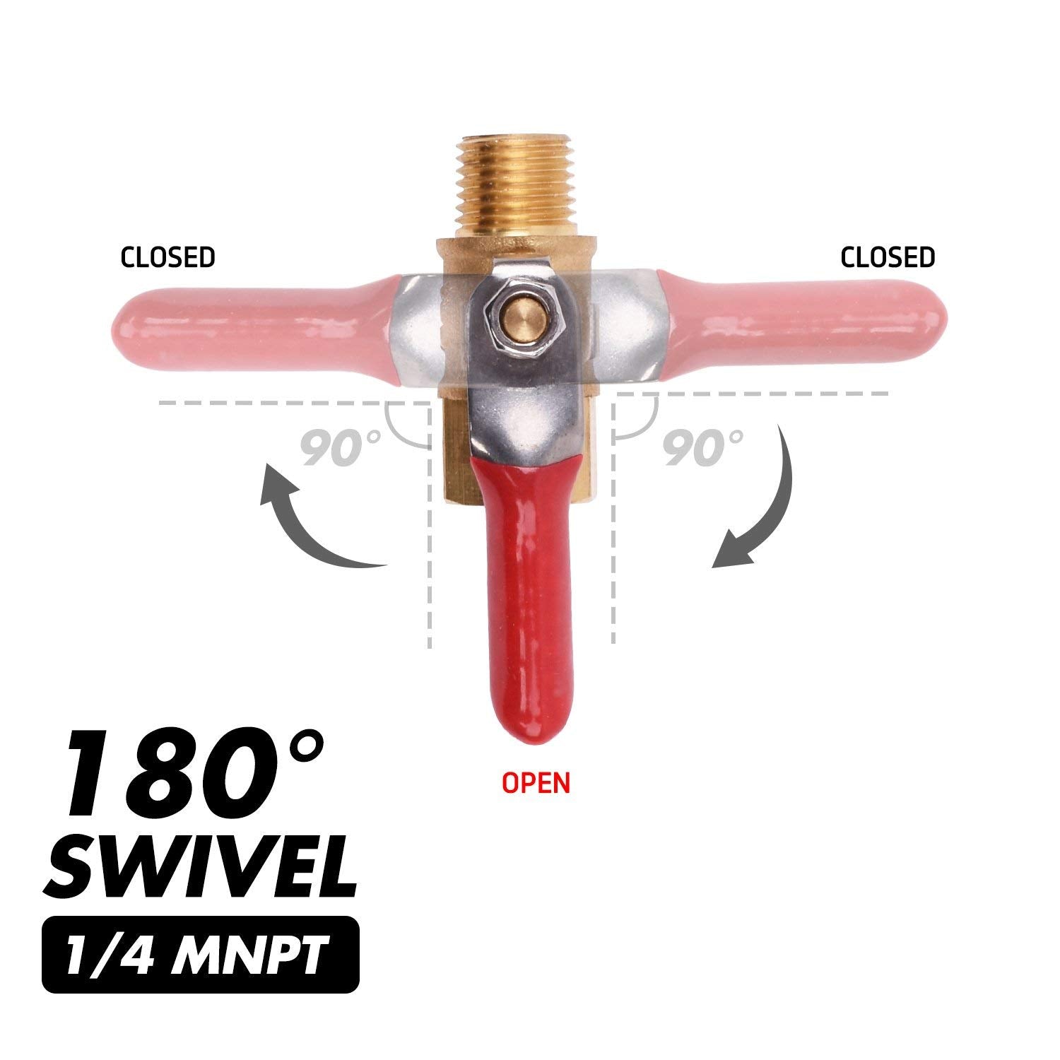 WYNNsky 1/4" Heavy Duty Air Compressor Brass Ball Valve Shut Off Switch, 1/4 Inch Male And Female NPT Thread Pipe Fitting