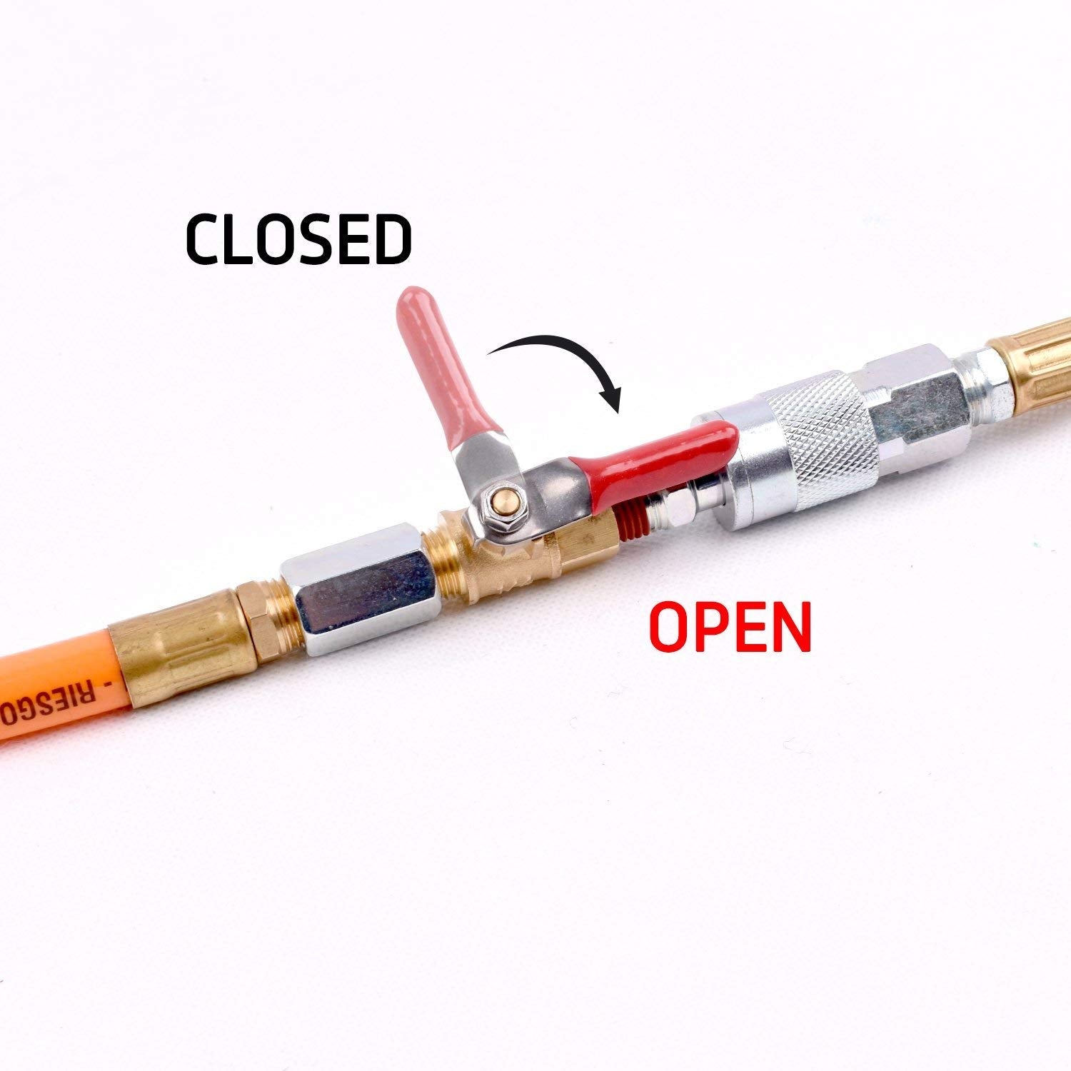 • Red Plastic-covered lever handle for on/off manual control.
