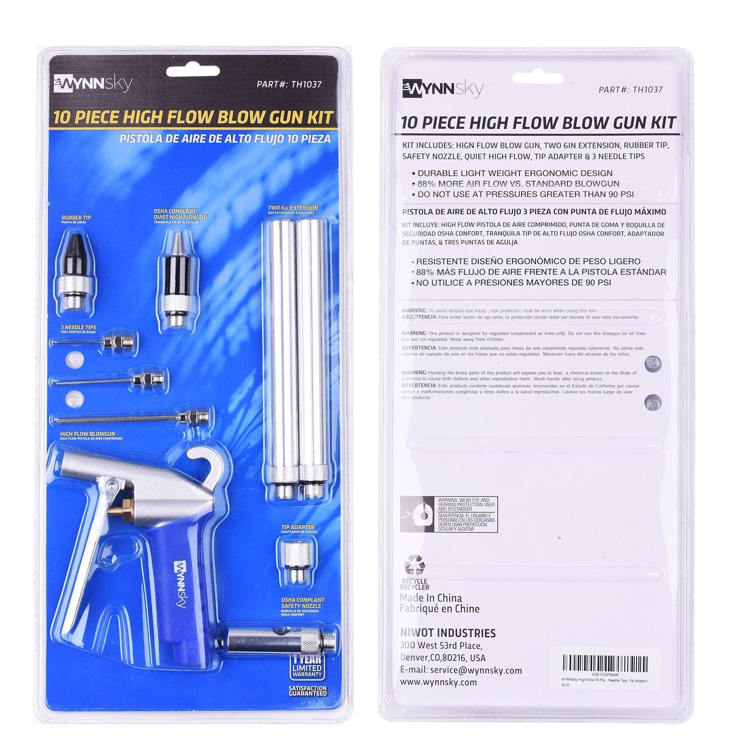 WYNNsky High Flow Air Blow Gun with 9 PCS Blower Tips, 6 inch Extensions, Needle and Rubber Tip, Xtreme Flow Nozzle, Adaptor, 120PSI Working Pressure, Air Compressor Accessories Kit, Cleaning Air Tool