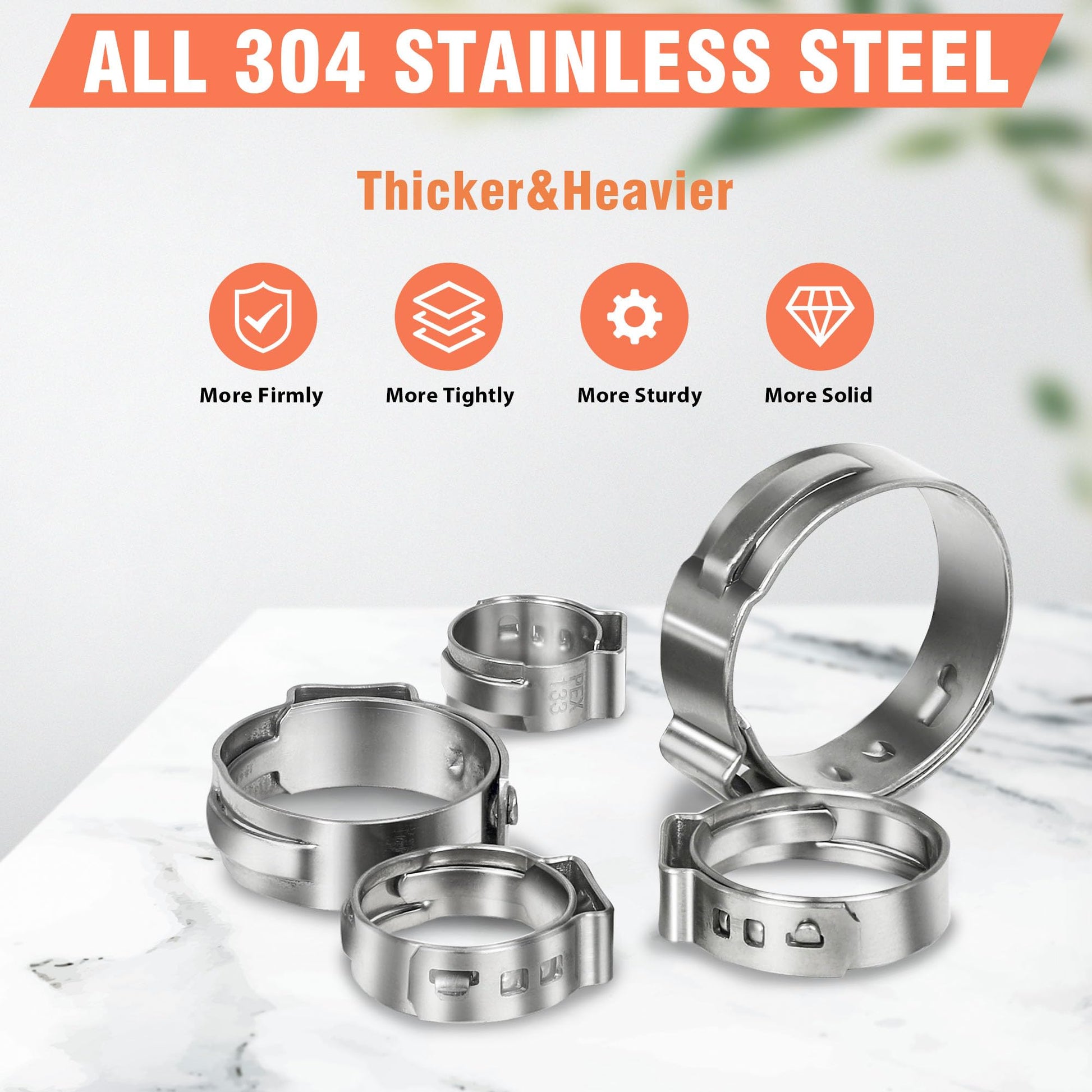 • 【High Quality】 These 3/4 pex clamps are made of 304 stainless steel, which is anti-corrosion, rust-proof, waterproof and oil-proof, anti-oxidation, and can be used for a long time, not easy to rust and break.