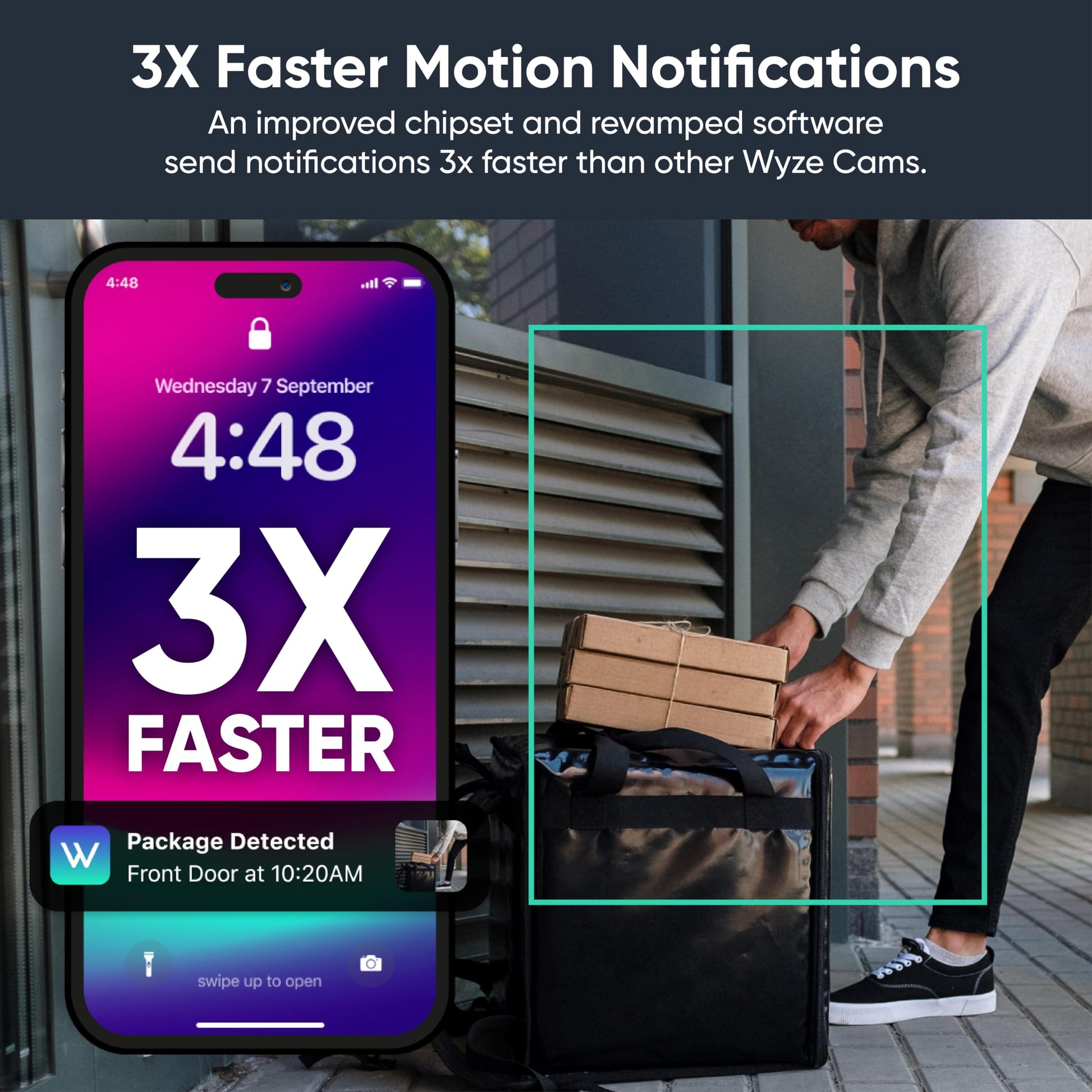 • Instant Motion and Sound Alerts - Stay informed with instant notifications sent to the Wyze app whenever it detects motion or sound. You can adjust sensitivity with Motion Detection Zones or easily turn off notifications whenever needed.