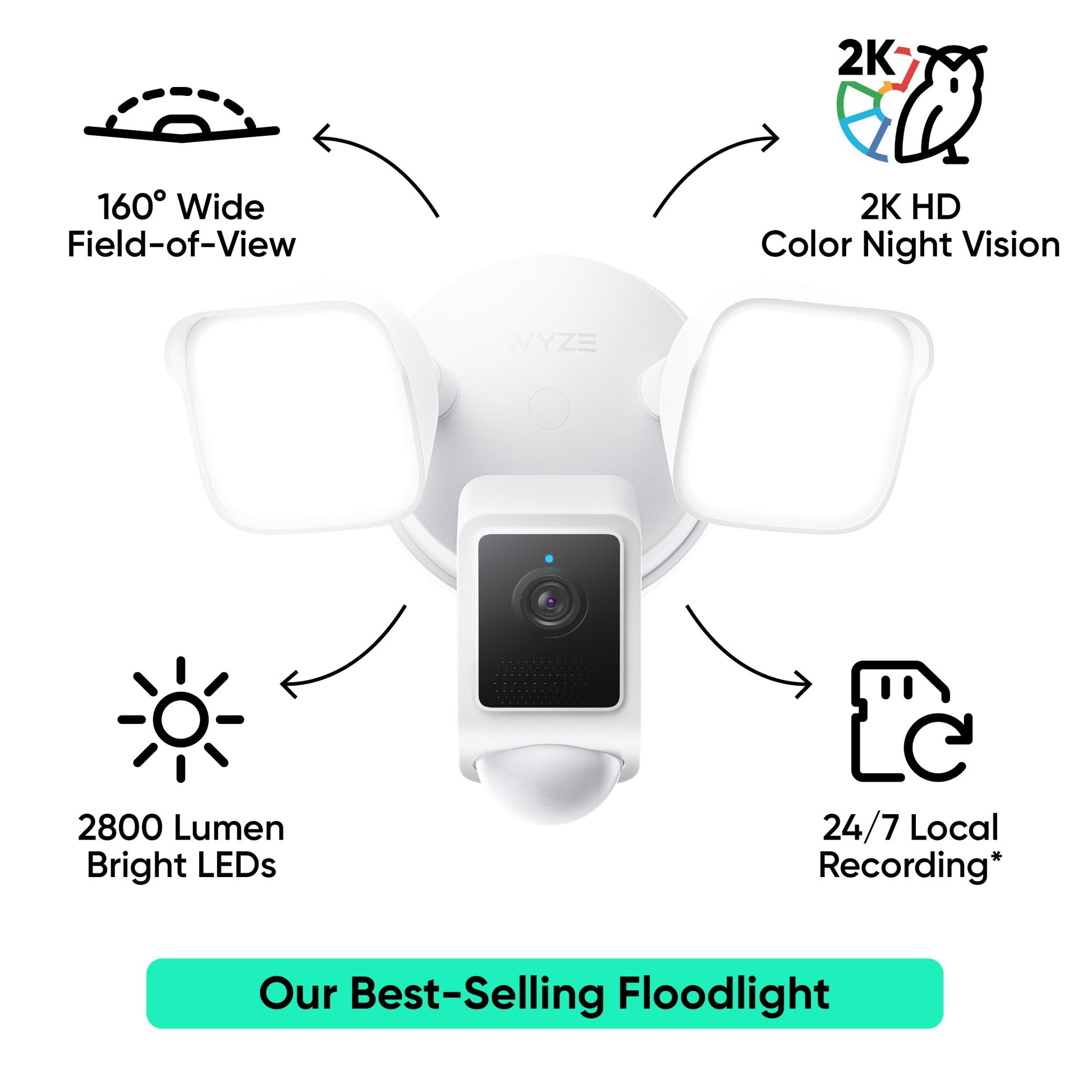 Details: Experience ultimate peace of mind with the WYZE Floodlight Camera v2, a reliable guardian for your home. Delivering clear 2K HD video and vibrant color night vision, this outdoor security camera ensures your surroundings are always under watch. The expansive 160° wide-angle view and advanced motion detection eliminate blind spots, providing comprehensive protection. Enjoy a well-lit exterior with powerful 2800-Lumen LEDs, and let the 105dB siren add an extra layer of security. Tailor your surveillance with personalized motion zones through the user-friendly Wyze app. Benefit from continuous 24/7 local recording to a MicroSD card, capturing 30 days of footage. Communicate through the two-way talk feature and amplify security with the loud siren for a strong deterrent. With IP65 weather resistance, easy setup, and dusk-to-dawn automation, this wired floodlight camera is your key to a secure and peaceful home. Invest in WYZE Floodlight Camera v2 to safeguard your home effortlessly. Outdoor power adapter sold separately.