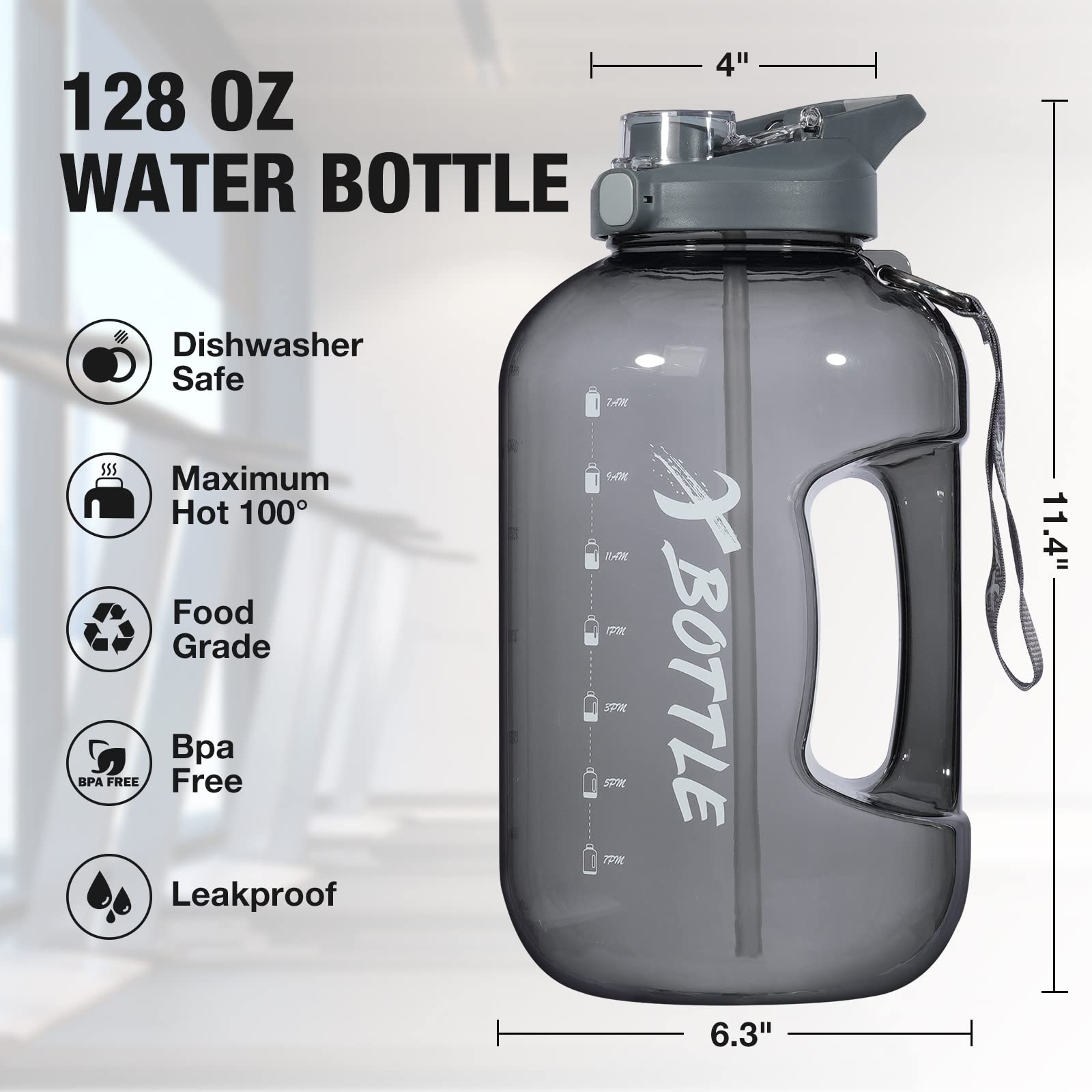 XBOTTLE 1 Gallon BPA Free Tritan Water Bottle with Straw & Chug Lid for Sports Camping Fitness 128oz Black