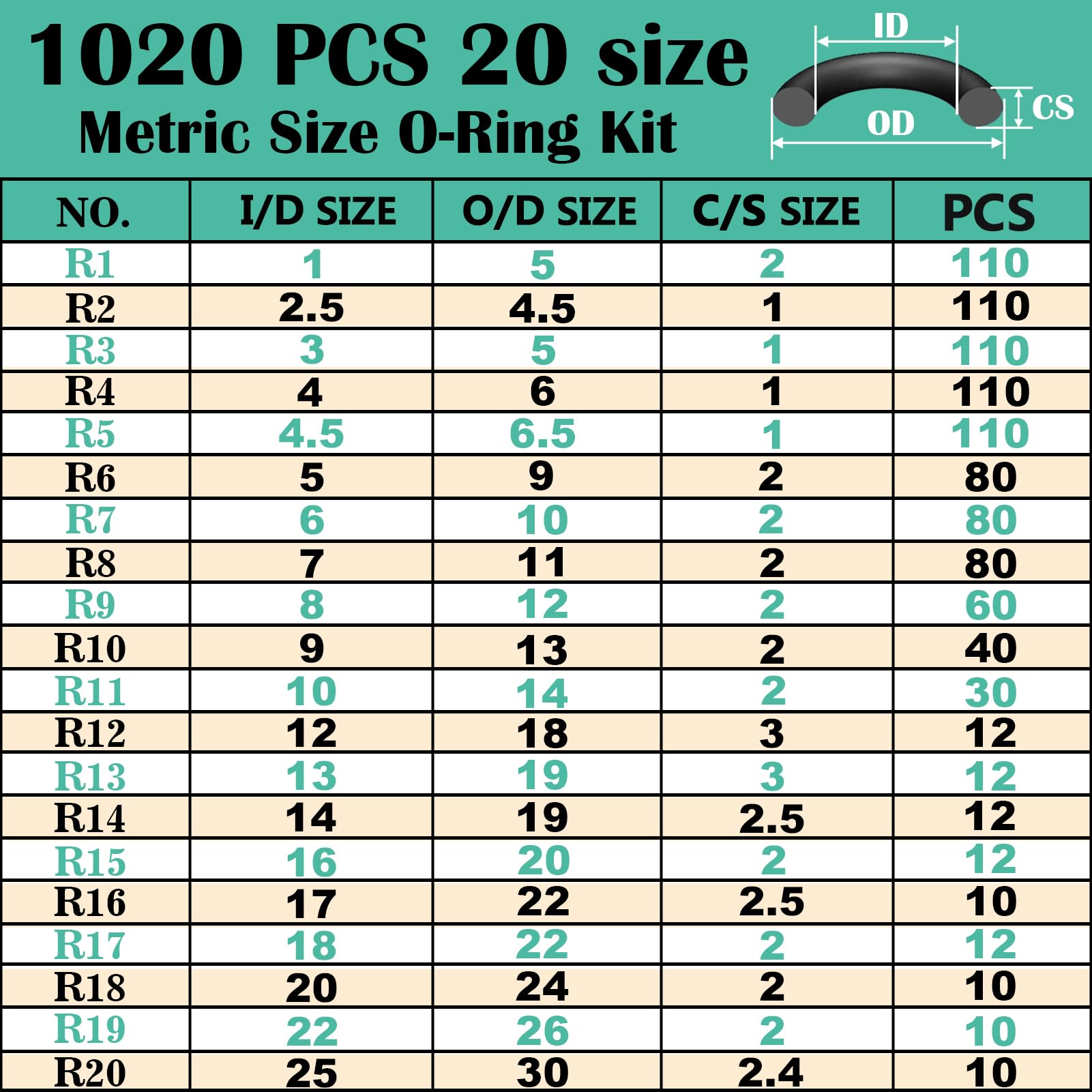XBVV 1020 Pcs O Ring Kit 20 Size Nitrile Rubber O Ring Assortment Set for Car Auto Vehicle Repair Faucet Plumbing Air or Gas Sealing Connections Resist Oil and Heat