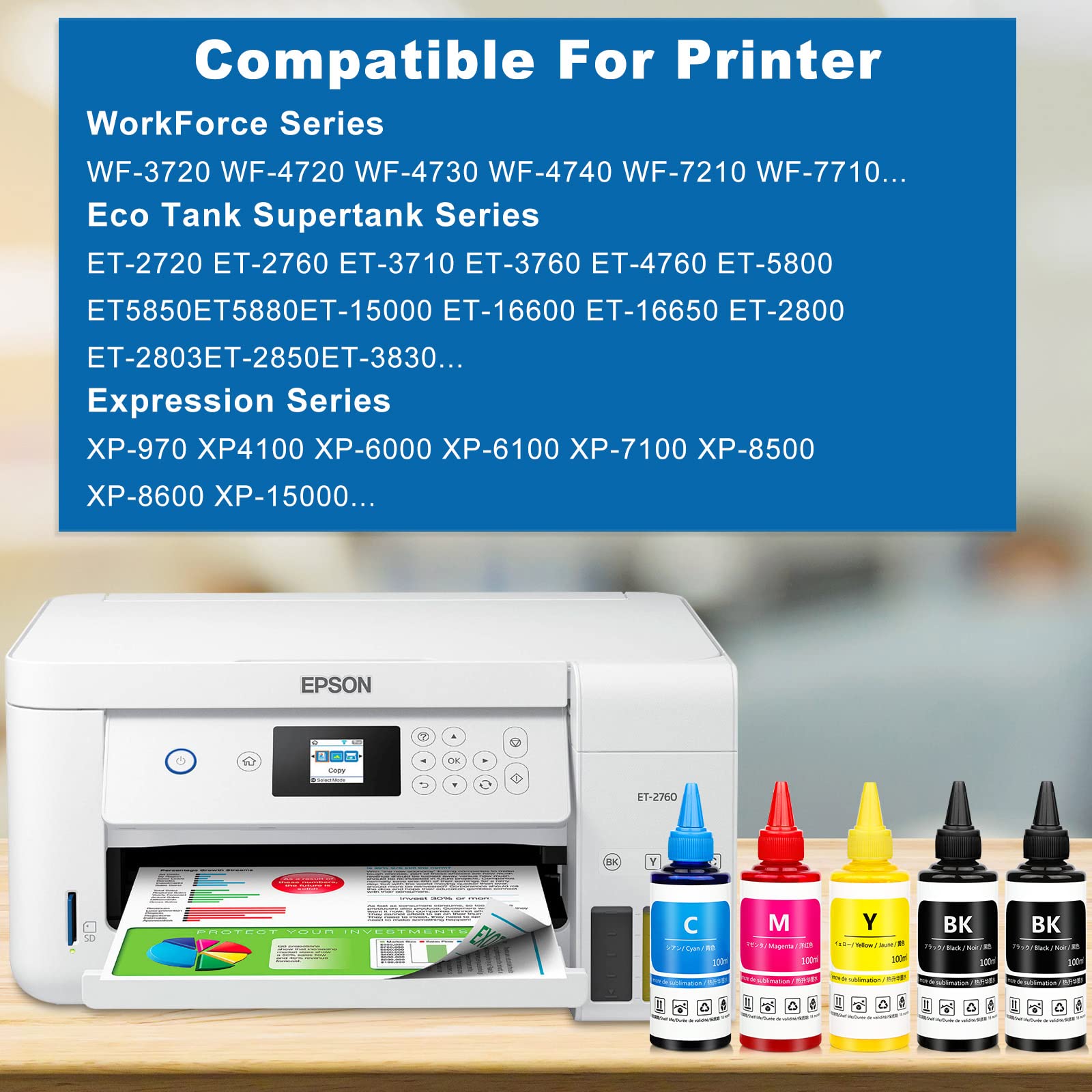 Xcinkjet Sublimation Ink Refilled for ET-2800 ET-2803 WF-7210 WF-7720 ET-4700 ET-2760 ET-2850 ET-15000 ET2720 WF7710 ET-4800 ET2650 ET2750 WF2750 WF3620 Printer(BK*2 C*1 M*1 Y*1 All 5 Packs)