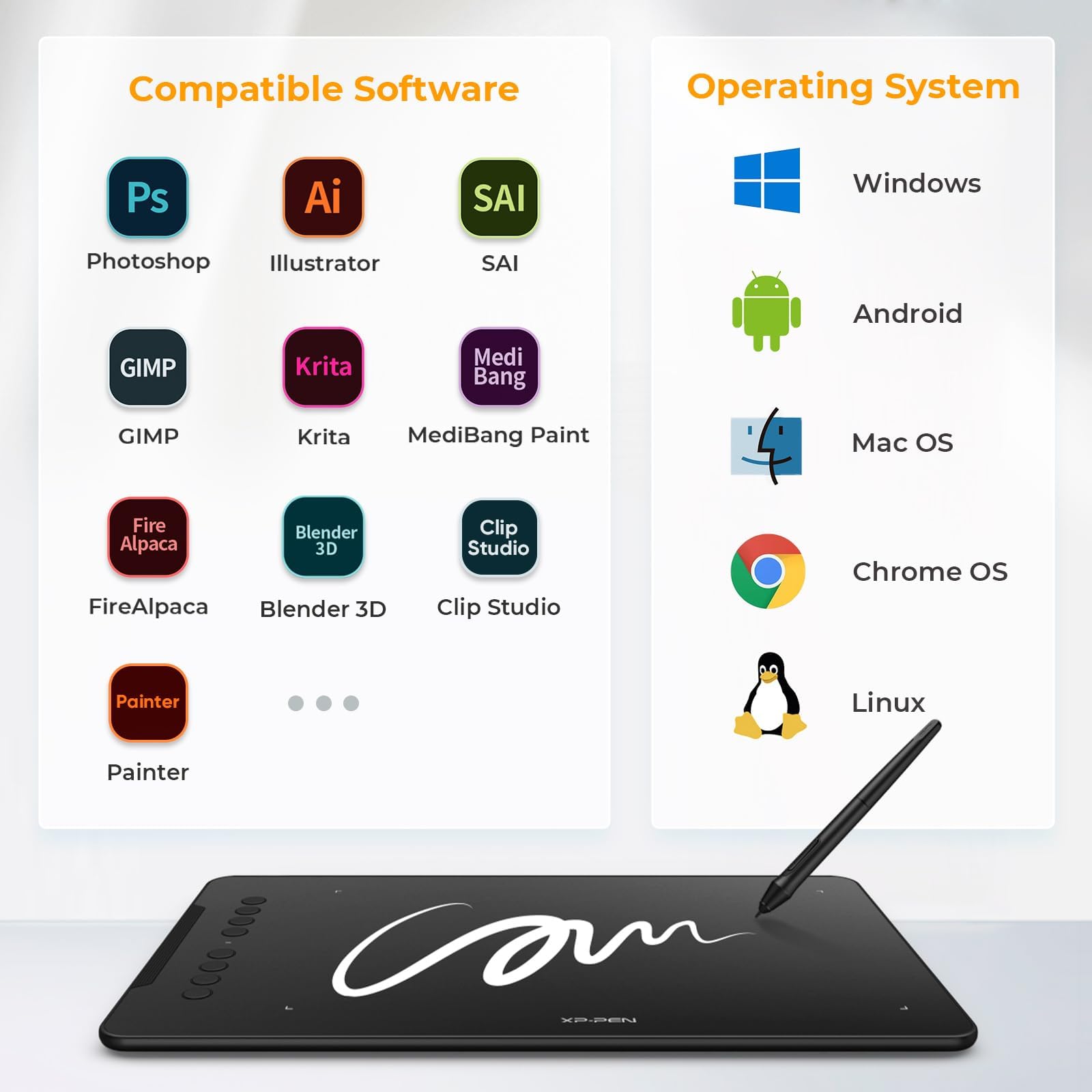 • Digital Drawing Tablet: Strong Compatibility-The Deco 01 V3 is compatible with Windows 7 (or later), Android 10.0 or later), mac OS 10.13 (or later), Chrome OS 88 (or later) and Linux. Also compatible with many major designer software such as Photoshop, $Al, Painter, llustrator and Clip Studio, etc.*Please update your Windows to version 11 or Mac OS to version 12 first