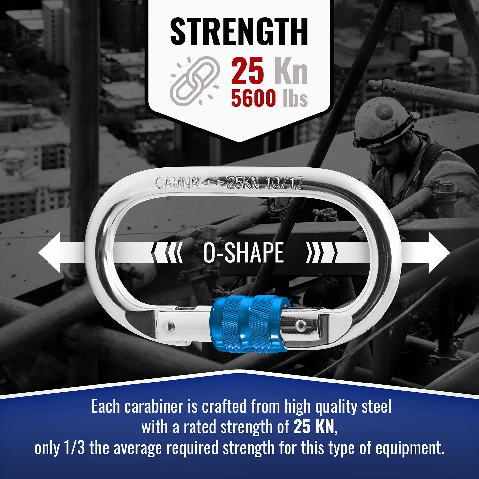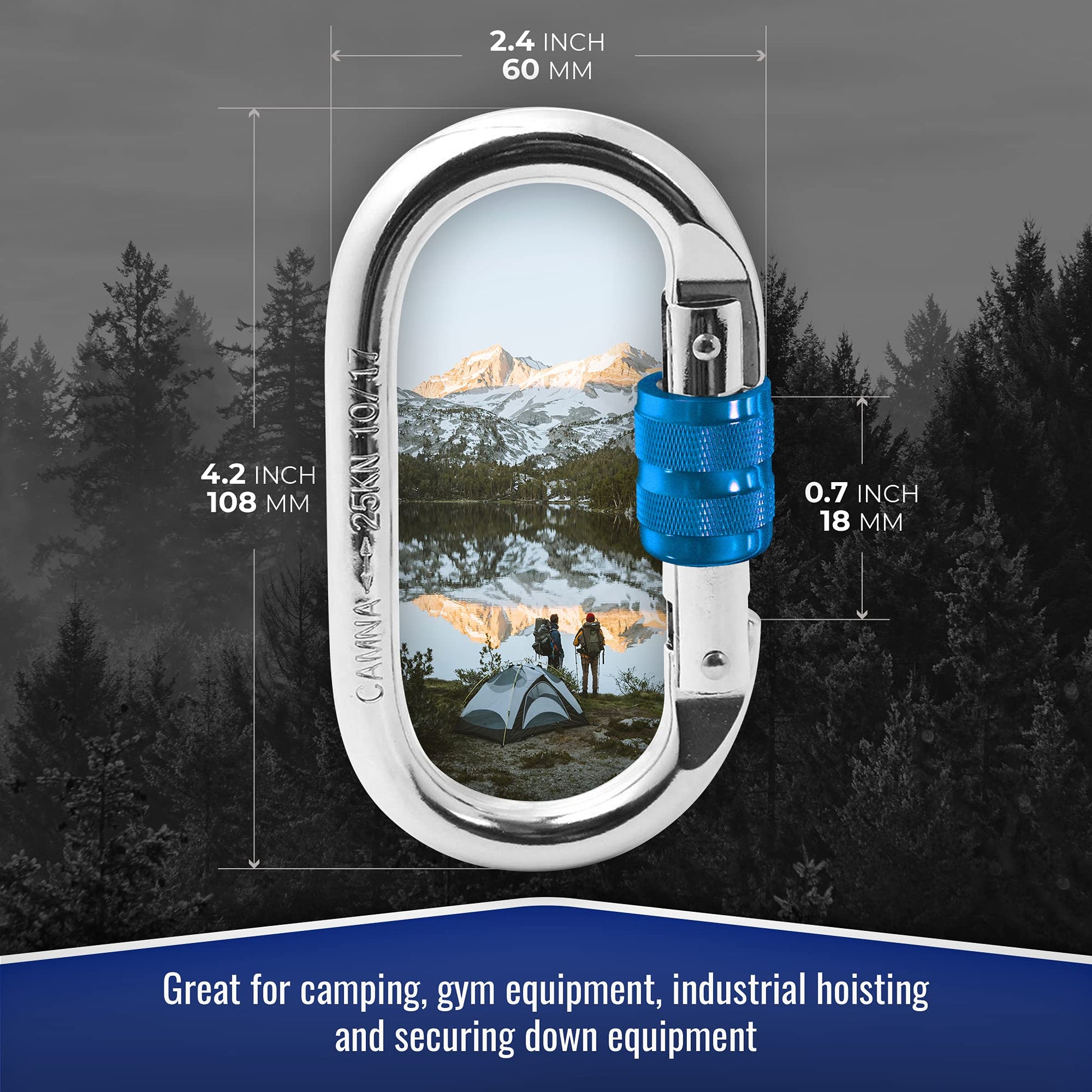 XTEK Climbing Carabiner 25kN – Heavy Duty Steel Locking Carabiner Clip – Large O-Shape Oval Caribeaner for Rock Climbing, Mountaineering, Rappelling – CE/UIAA Certified Climbing Gear