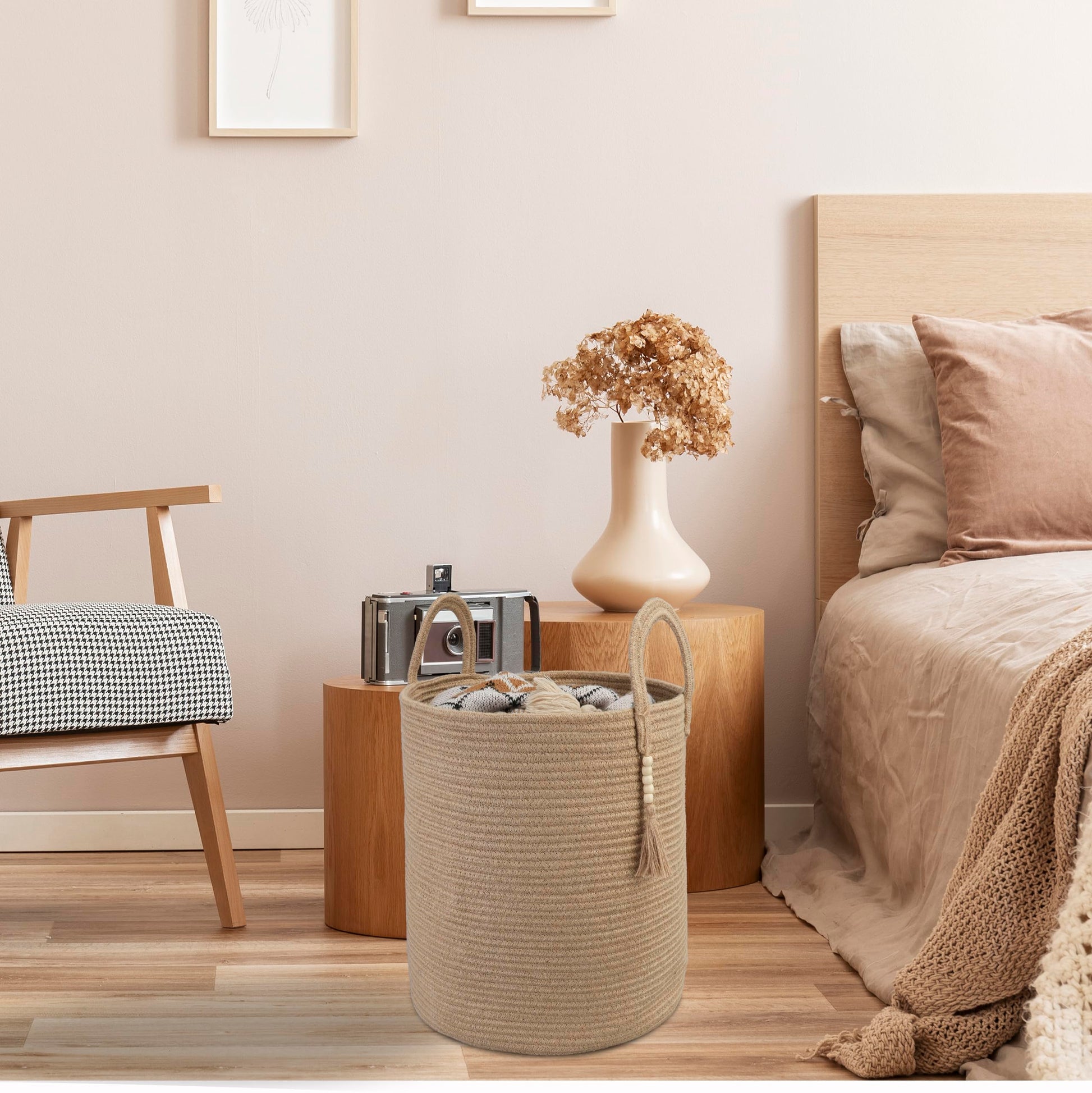 • Designed to complement your room and decor: We have carefully selected classic solid colors for these rope basket bins or hampers for laundry. With these colors, the laundry hamper will look good in any room of your home. This tall round rope blanket storage basket enhances any room or decor. It is perfect for bedrooms, bathrooms, and dorm rooms. These aesthetic rope baskets or hampers for bedroom are essential items for your daily storage needs, helping keep your room clean and organized.