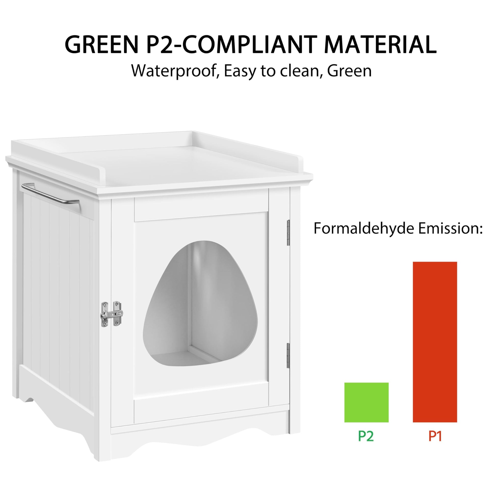 Yaheetech Cat Litter Box Enclosure, Hidden Litter Box Furniture with Side Towel Bar, Wooden Cat Washroom, Storage Cabinet, Indoor Pet House, Side Table Nightstand, White