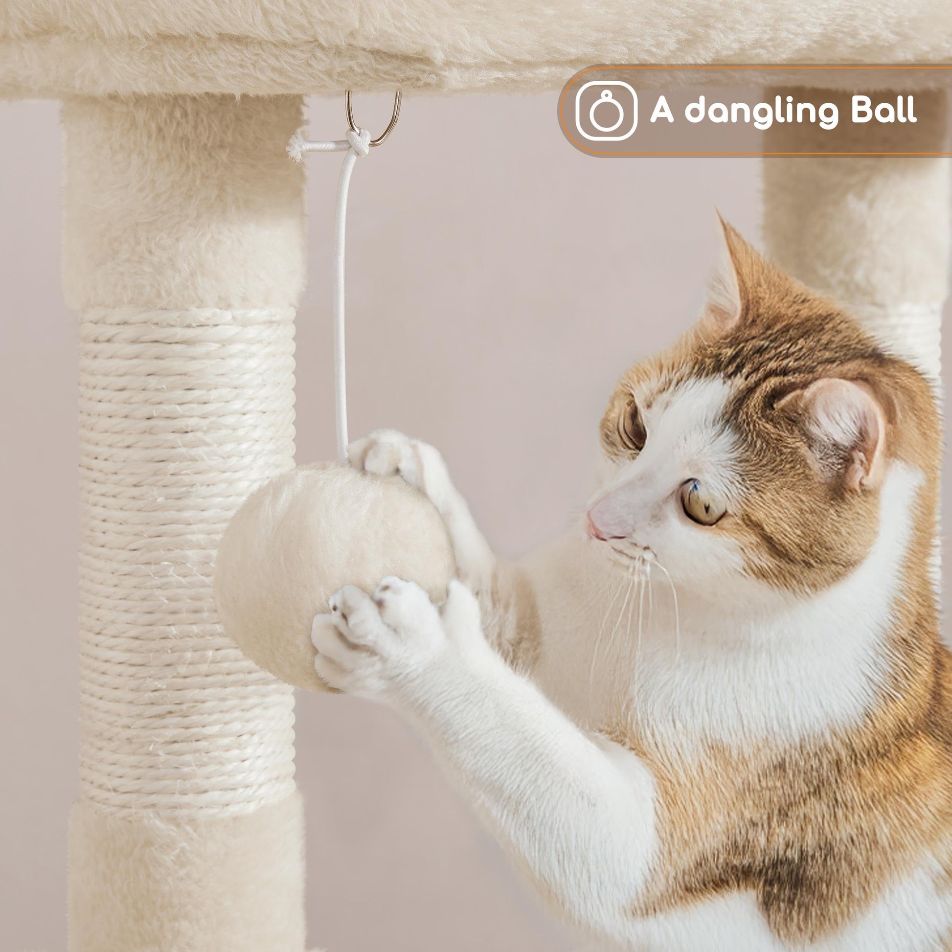 • PURRFECT CAT SCRATCHER: This cat tree features scratching ramp and several scratching posts. Crafted from natural sisal, these scratching posts offer a solution to keep their claws healthy and sharp and protect other furniture. At the same time, the ramp also acts as a ladder to help the kittens climb up and down