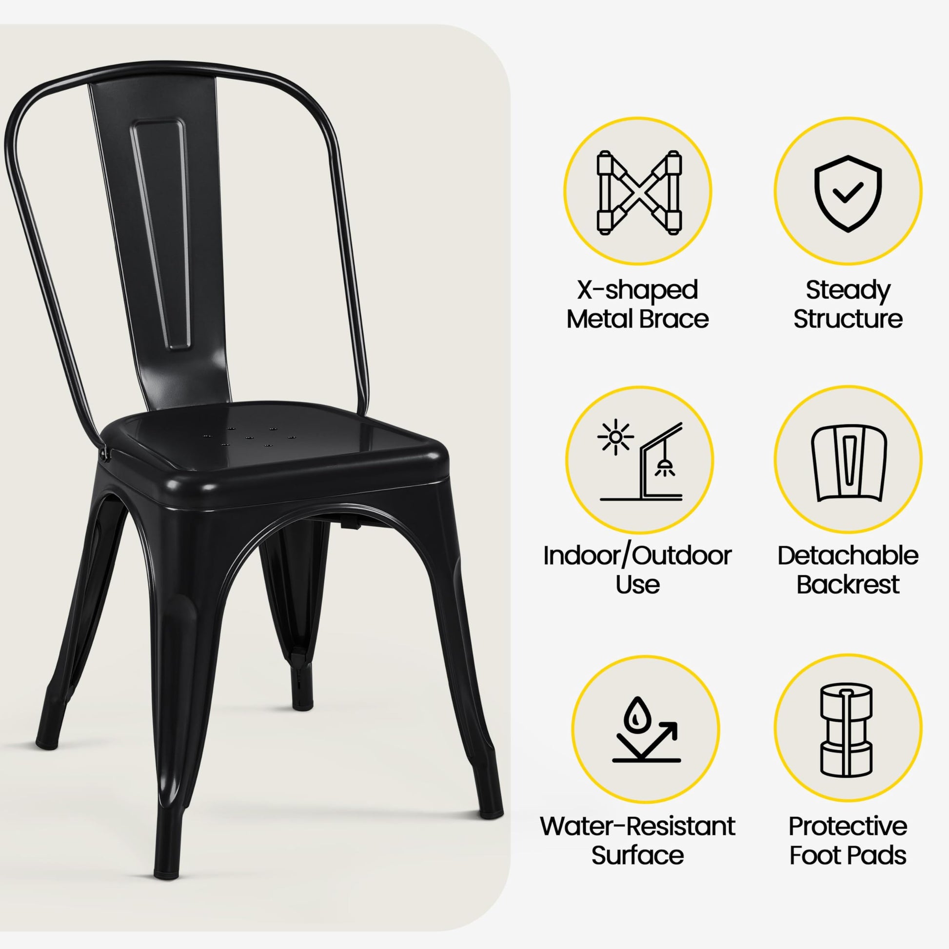 Yaheetech Metal Dining Chairs Set of 4, Industrial Stackable Kitchen Chairs with Back for Dining Room/Restaurant/Bistro/Patio, Indoor & Outdoor Use, Matte Black