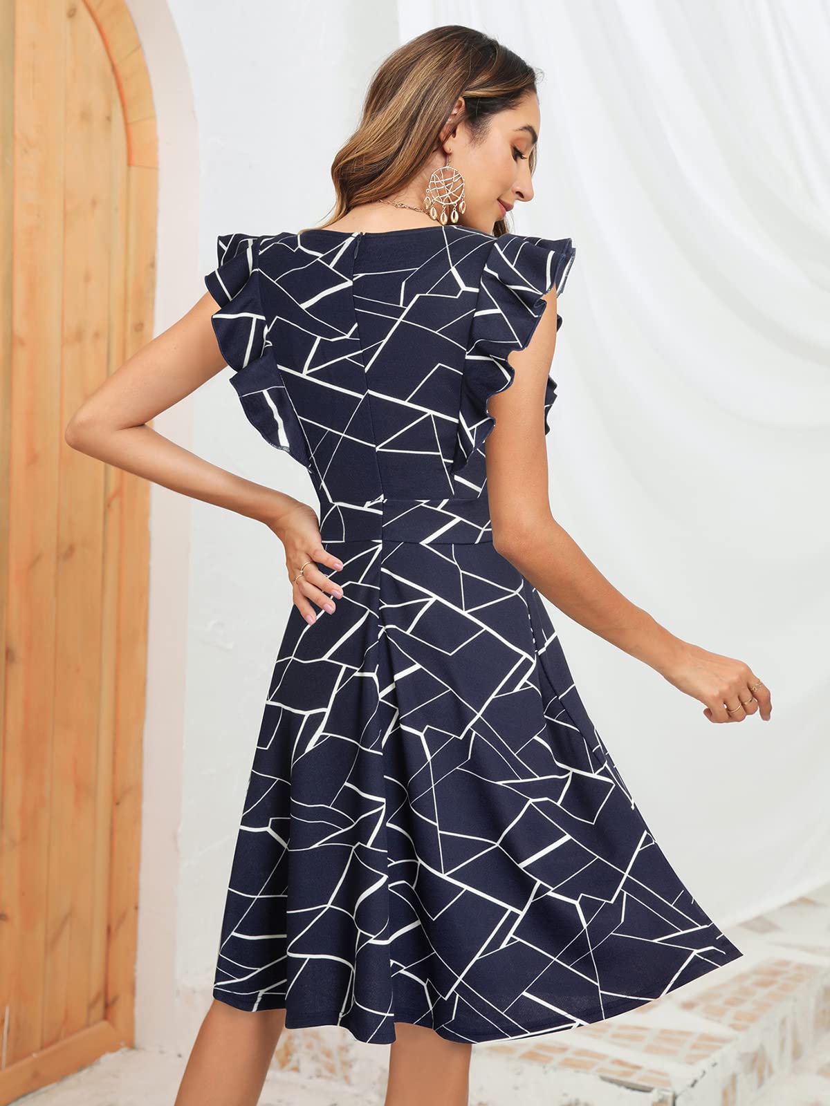 🌷Design Feature: This women's dresses have Ruffle Trim Sleeve, O-neck,Semi-swing style design.