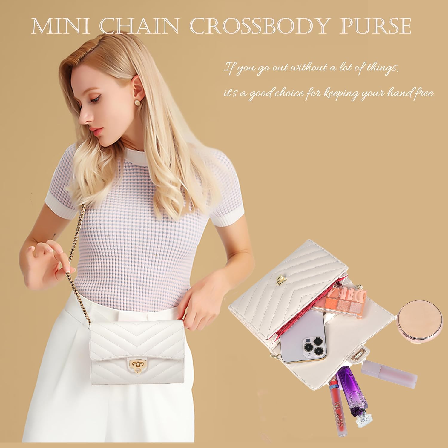 • Stylish chain design, Comes with an exquisitely designed metal chain strap. The chain undergoes special treatment, ensuring it doesn't fade or break easily