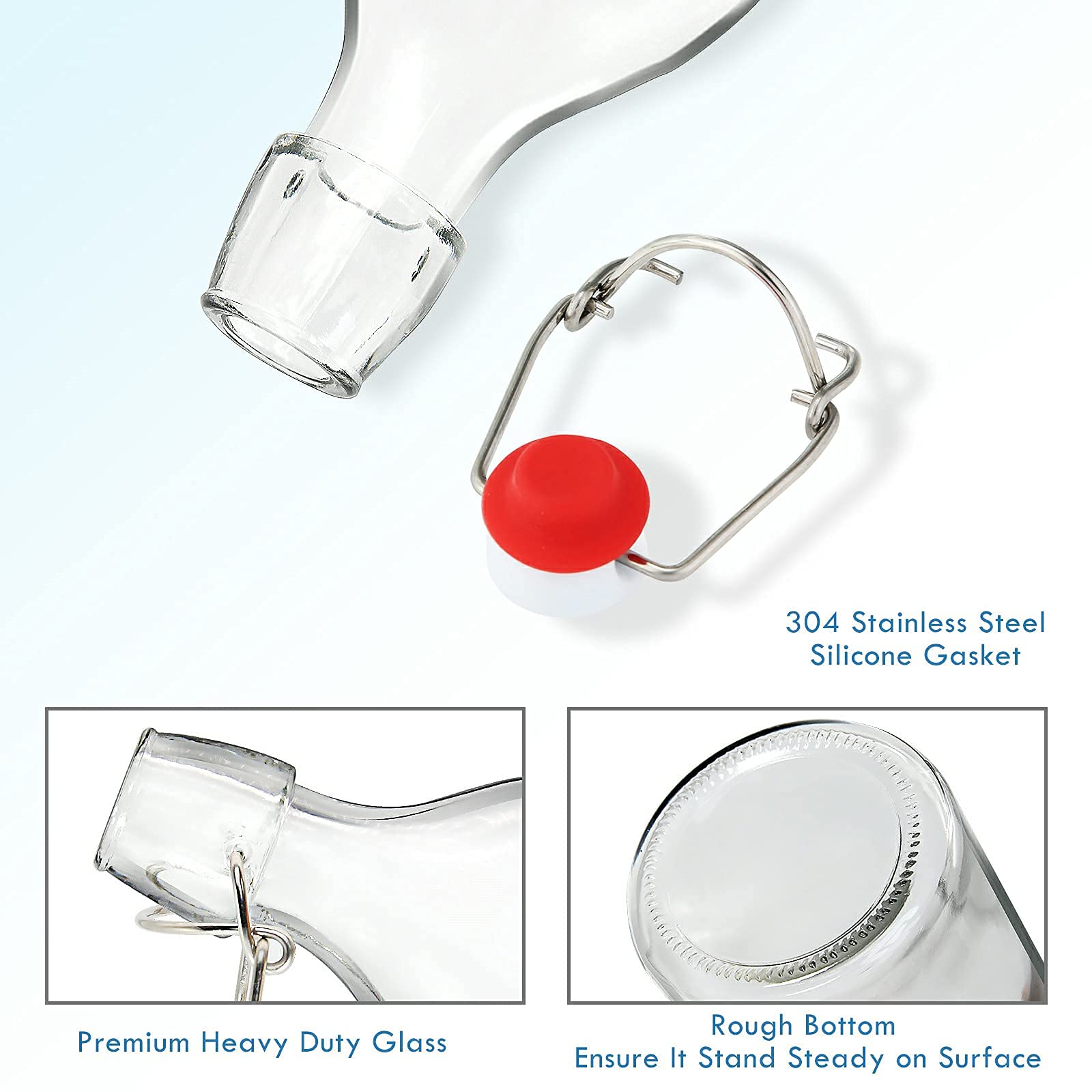 • High Quality and Durable: Brewing bottles are made of premium durable transparent glass to ensure you can see what is inside and the swing top caps with stainless steel closures and high pressure gaskets creating a secure airtight seal and leakproof for your contents to lock in freshness and flavor.