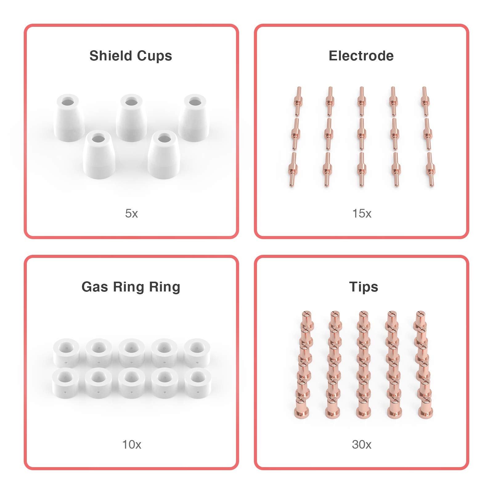 YESWELDER 60 Pcs Plasma Cutting Consumables Fit Cut40 50 with Plasma Cutter Torch PT31 LG40