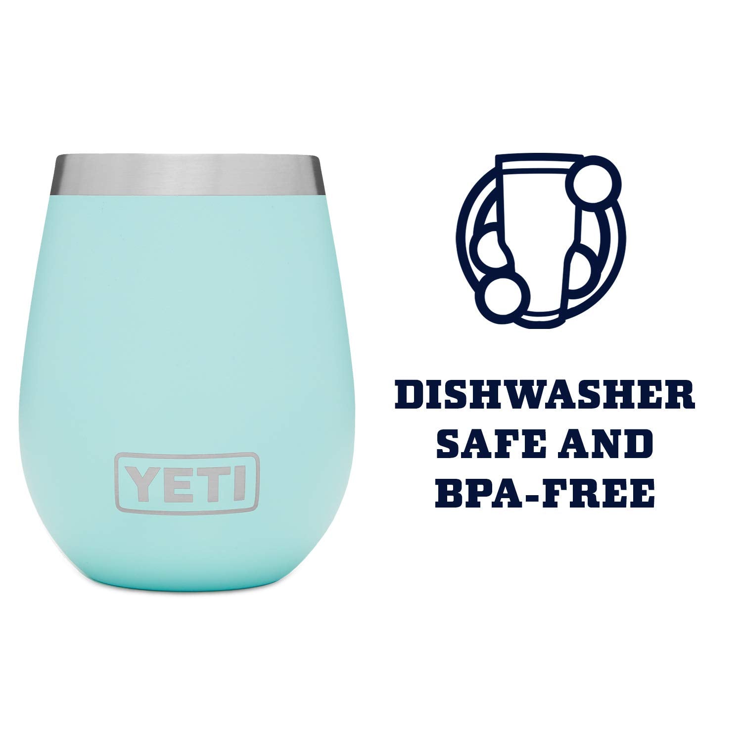 • YETI Wine Tumblers are dishwasher safe. Each measures 4.5 in high and 3.5 in wide