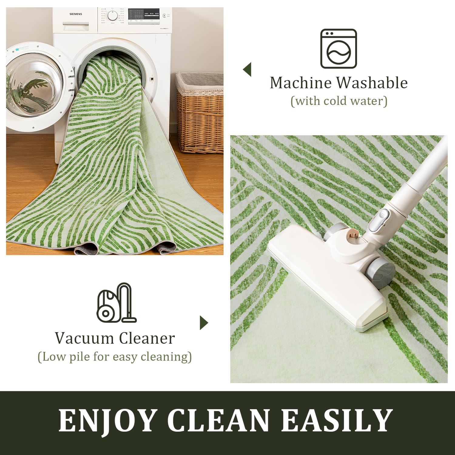 • Easy to Clean and Maintain: Dust and dirt on the area rug surface can be removed easily. You can clean spills immediately by blotting with a clean sponge or cloth. Or gently machine wash then air dry at room temperature.