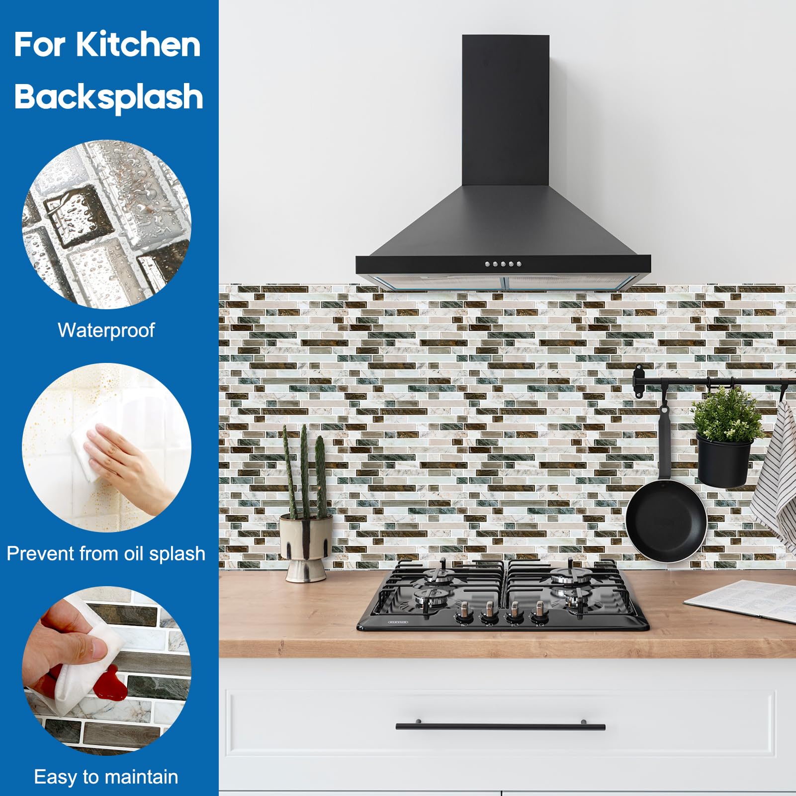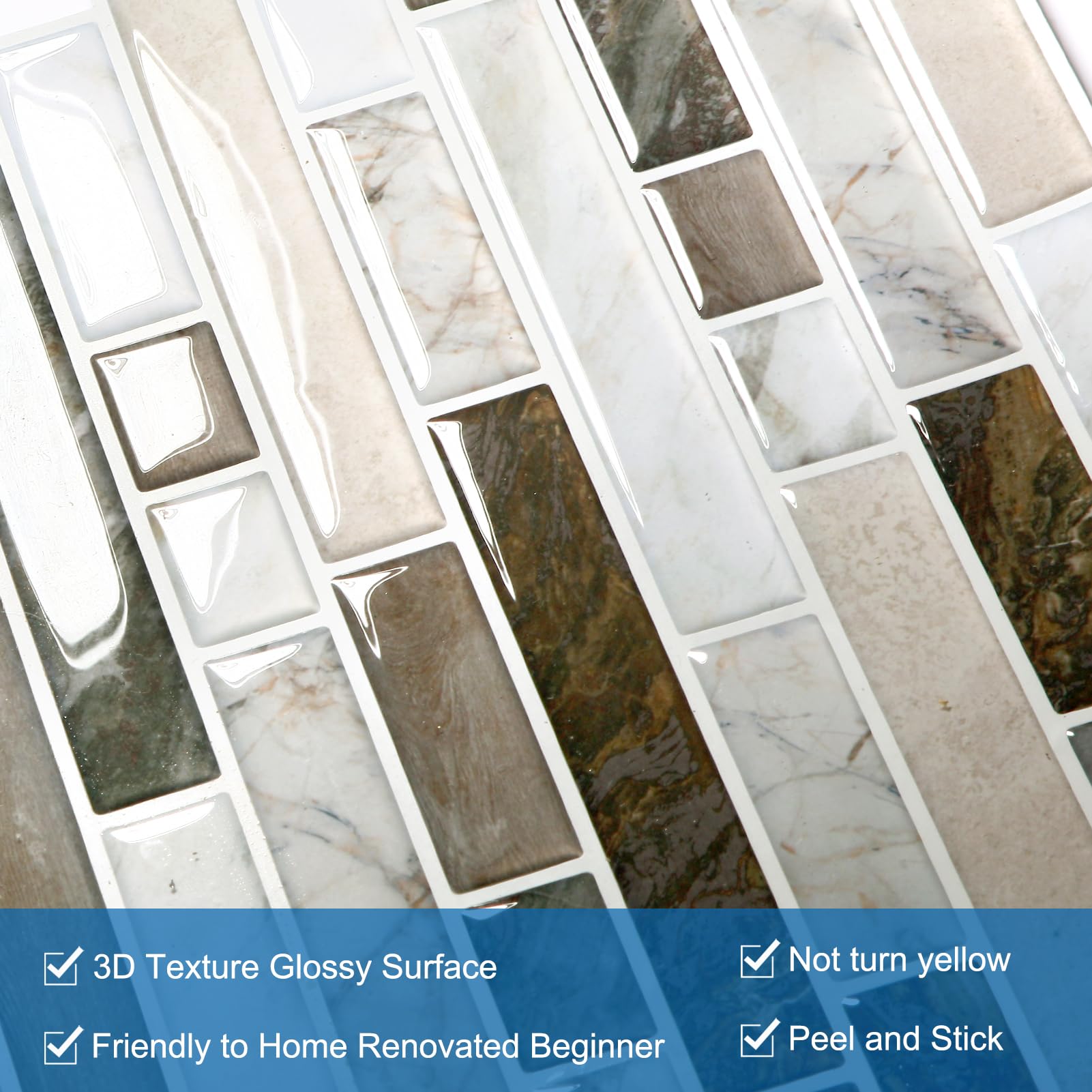 Yipscazo 10 Sheets Peel and Stick Backsplash for Kitchen Wall, 12''x12'' Waterproof Stick on Backsplash Smart Tiles for Bathroom,Removable Backsplash Wall Tiles in Brown