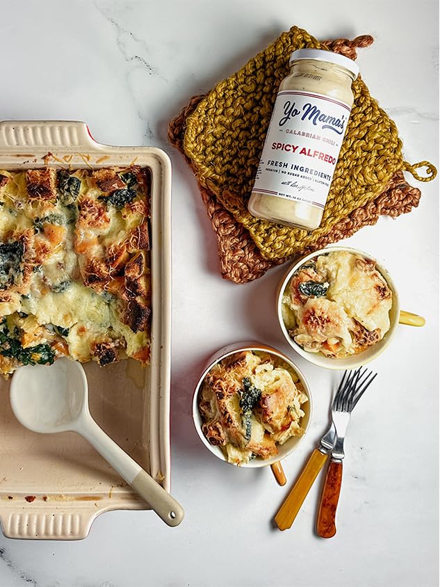 • TRY THE BEST - YO MAMA’S SPICY ALFREDO SAUCE!! Yo Mama’s has created a superb sauce with the same care and wholesome ingredients that you enjoy with our tomato ketchups and salad dressings. We’re so confident that you’ll love it, return any unused portion, and we’ll give you a !